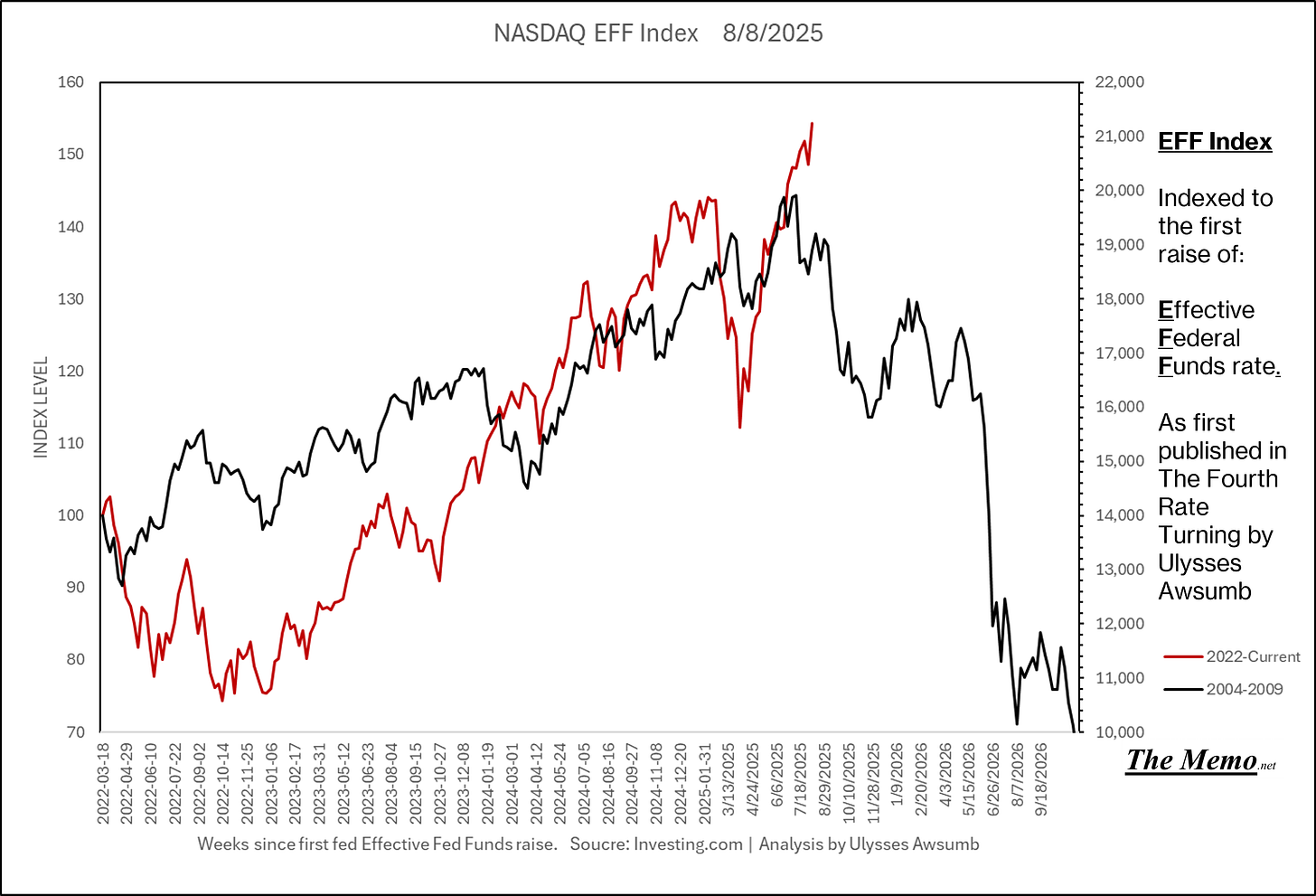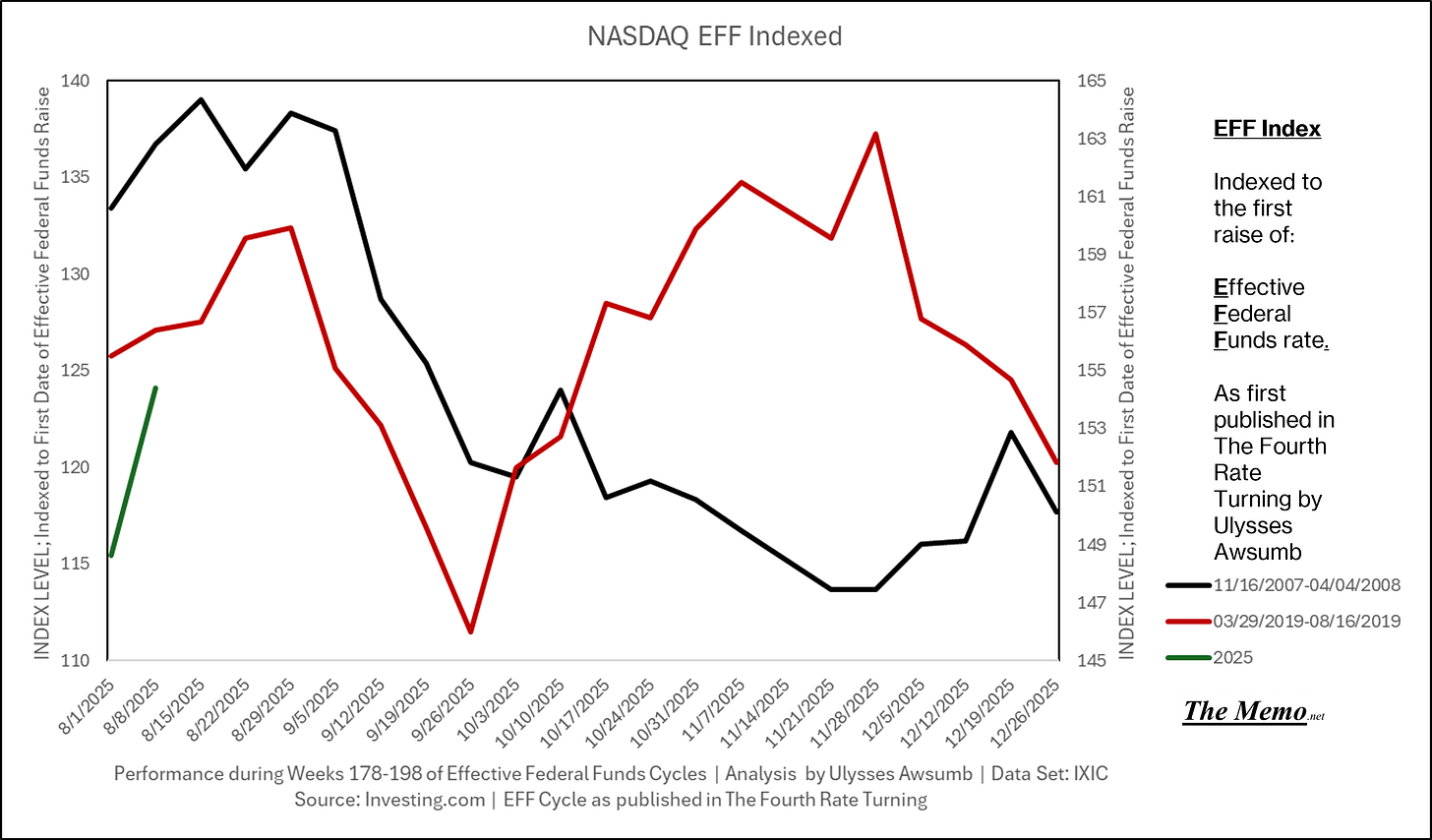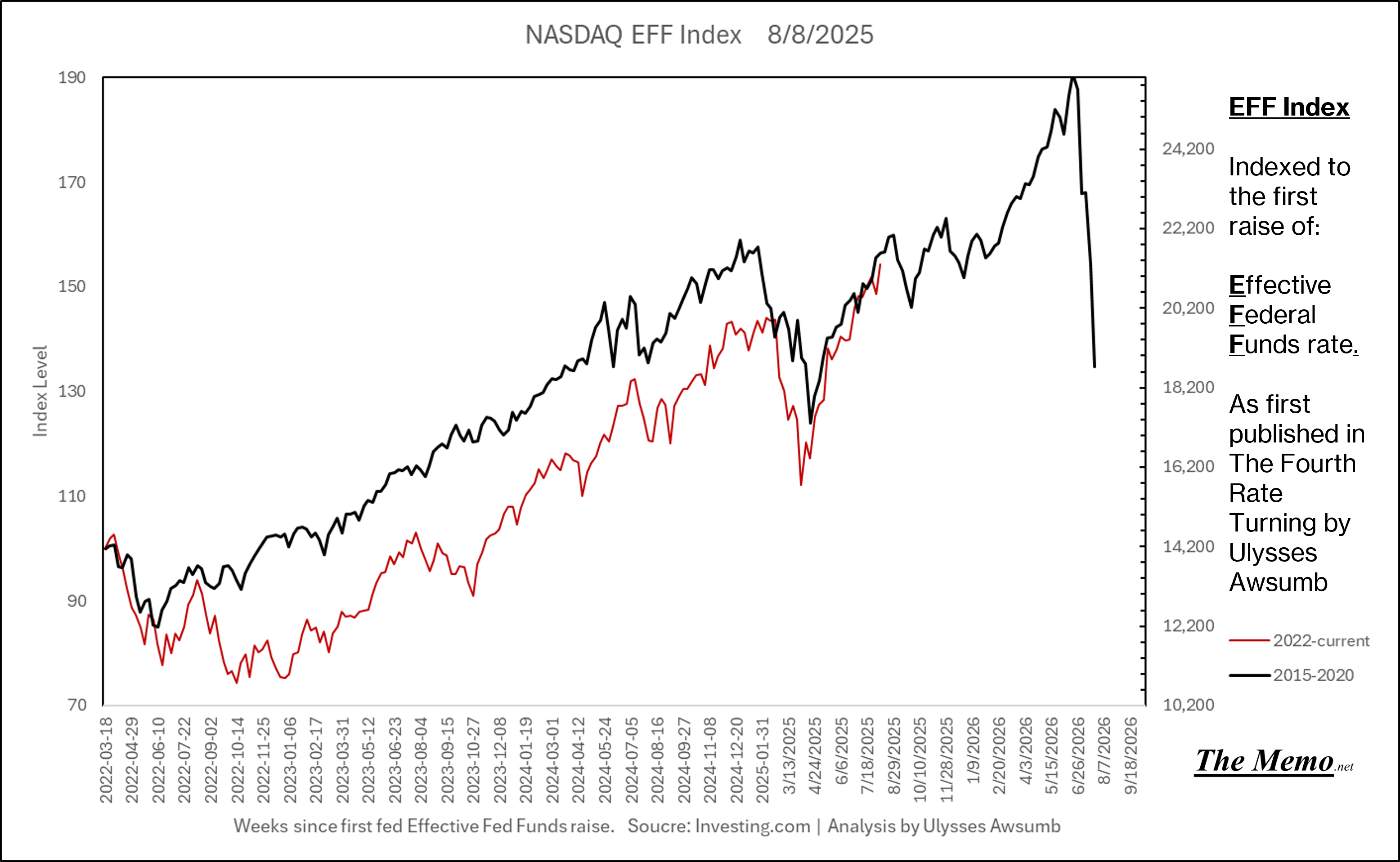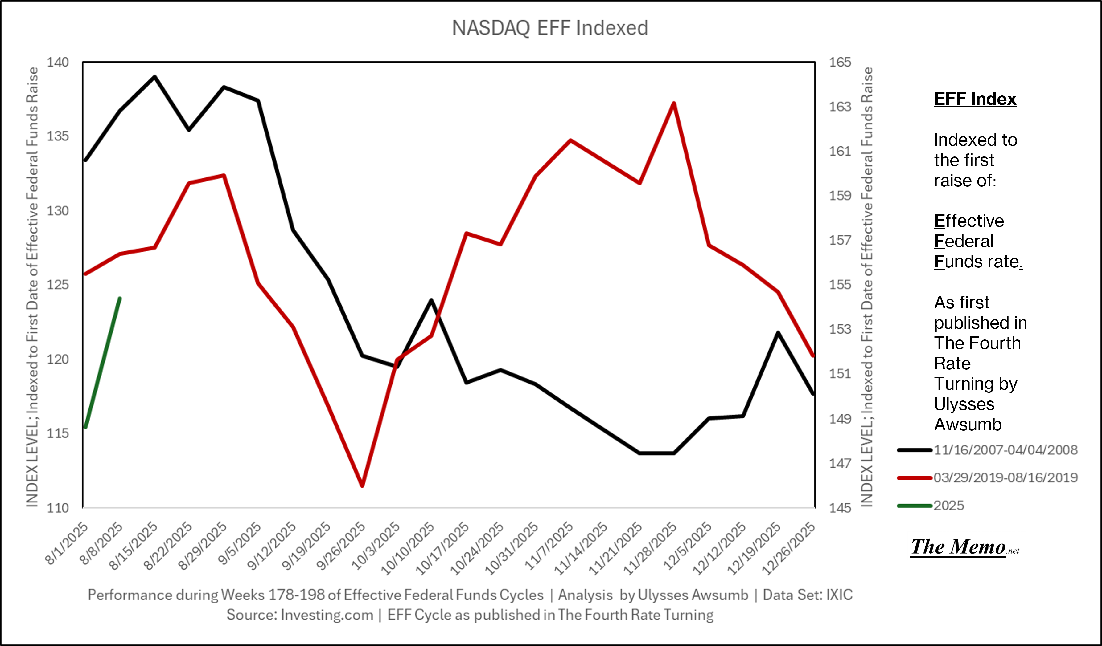 If you remember the last EFFing Memo, you’ll know this is the direction from here. Now adding the actual current timeline. (Green right Axis)