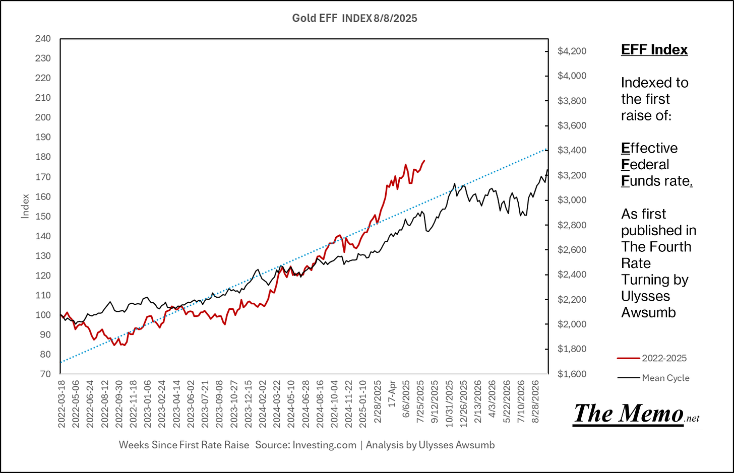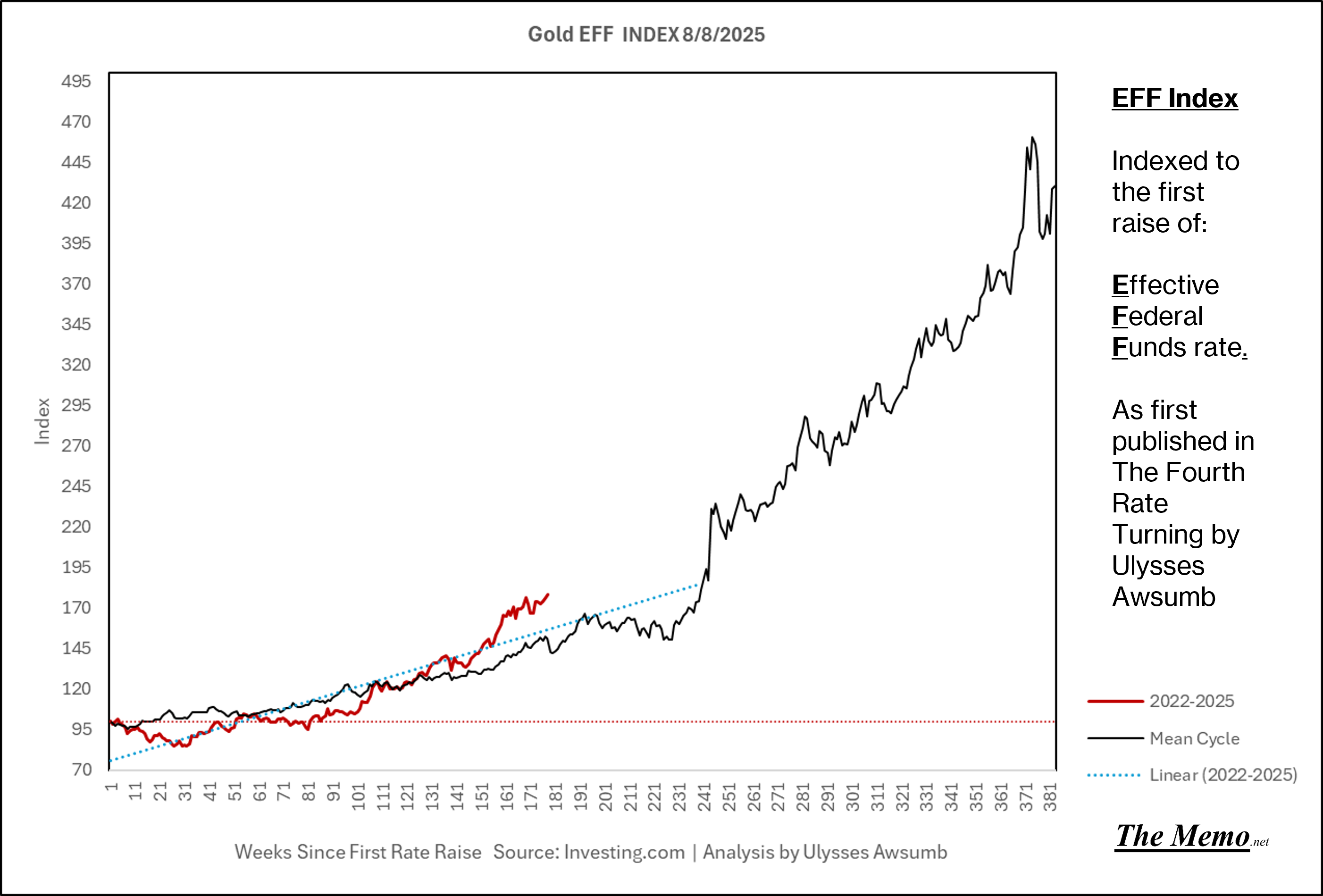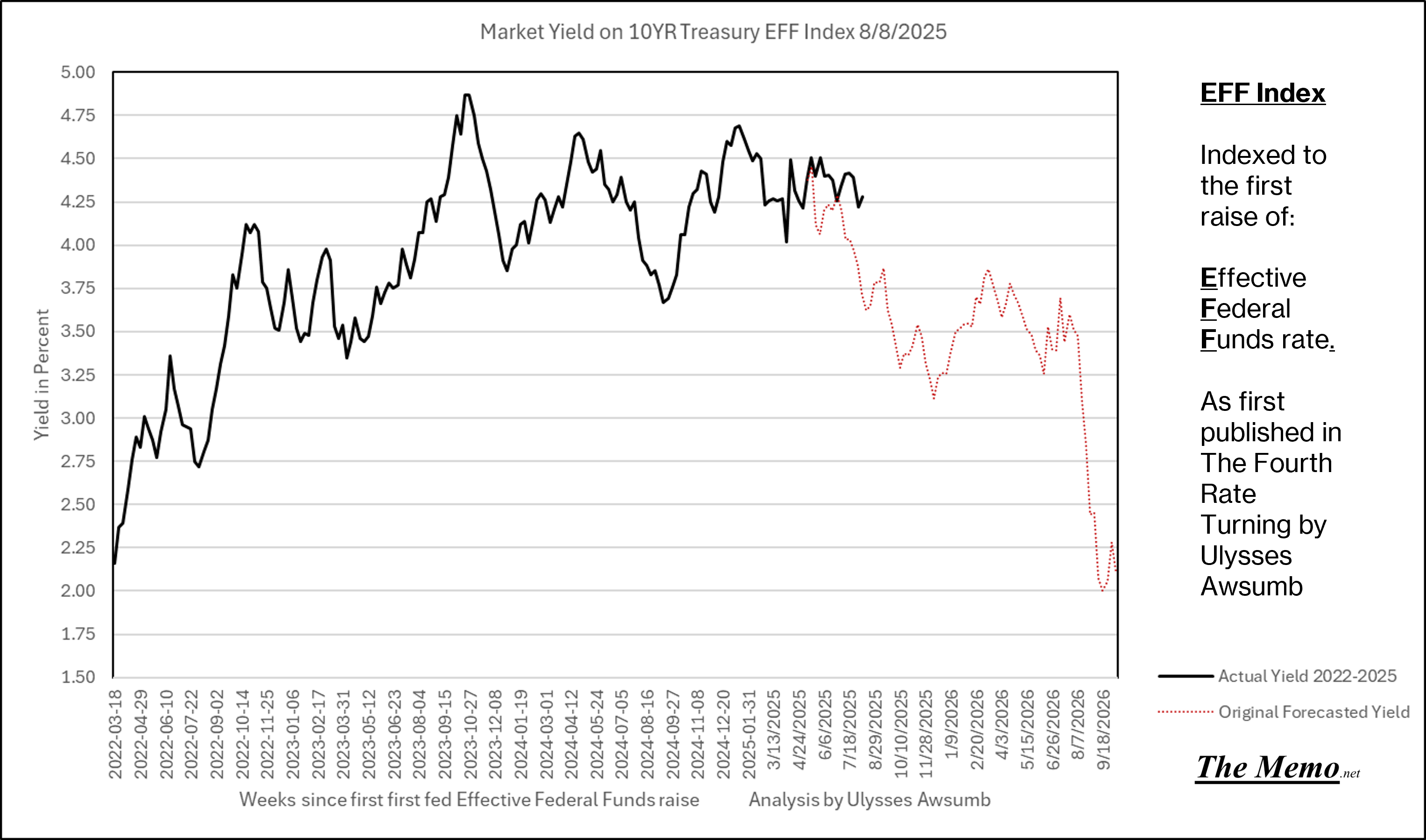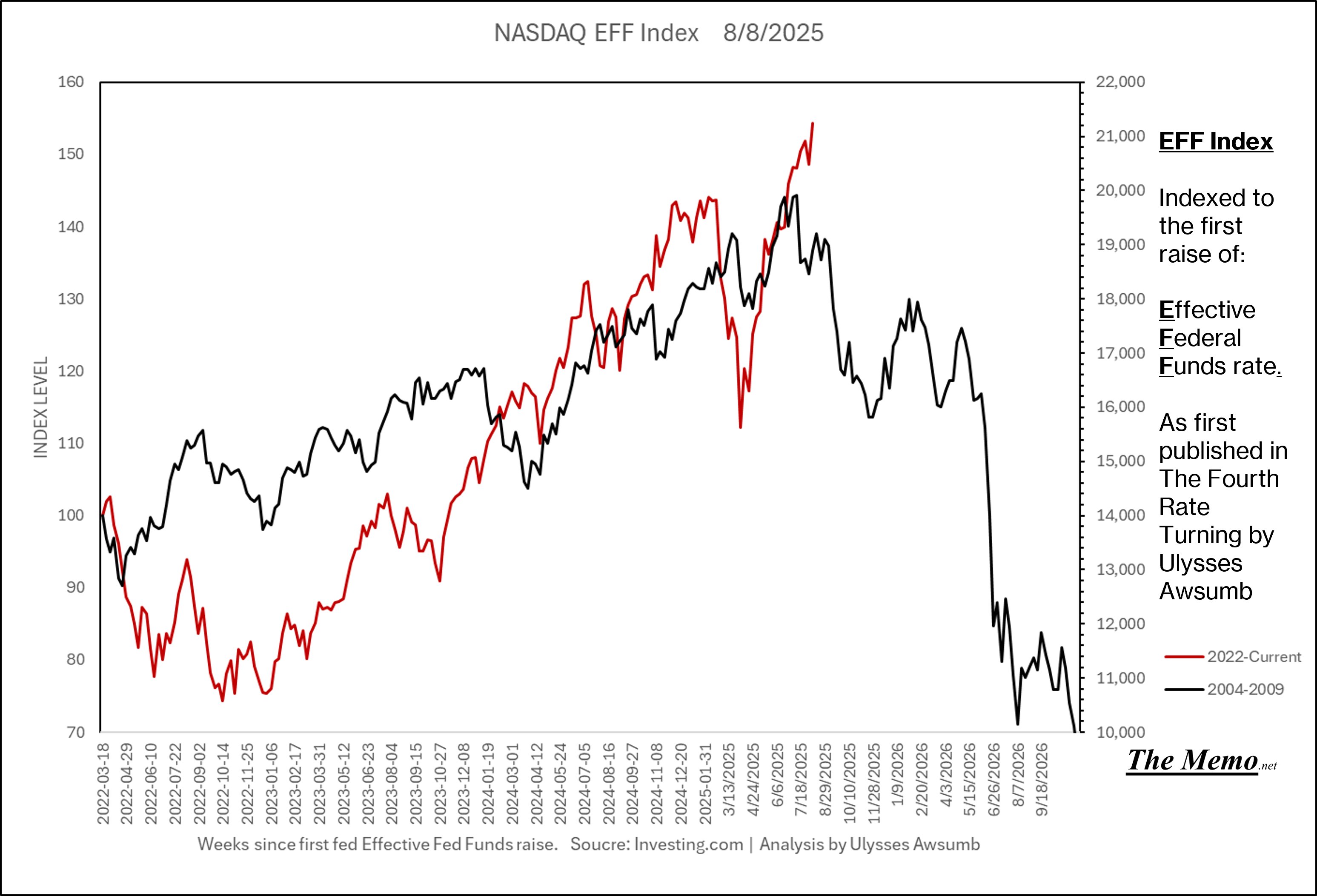 If you remember the last EFFing Memo, you’ll know this is the direction from here. Now adding the actual current timeline. (Green right Axis)