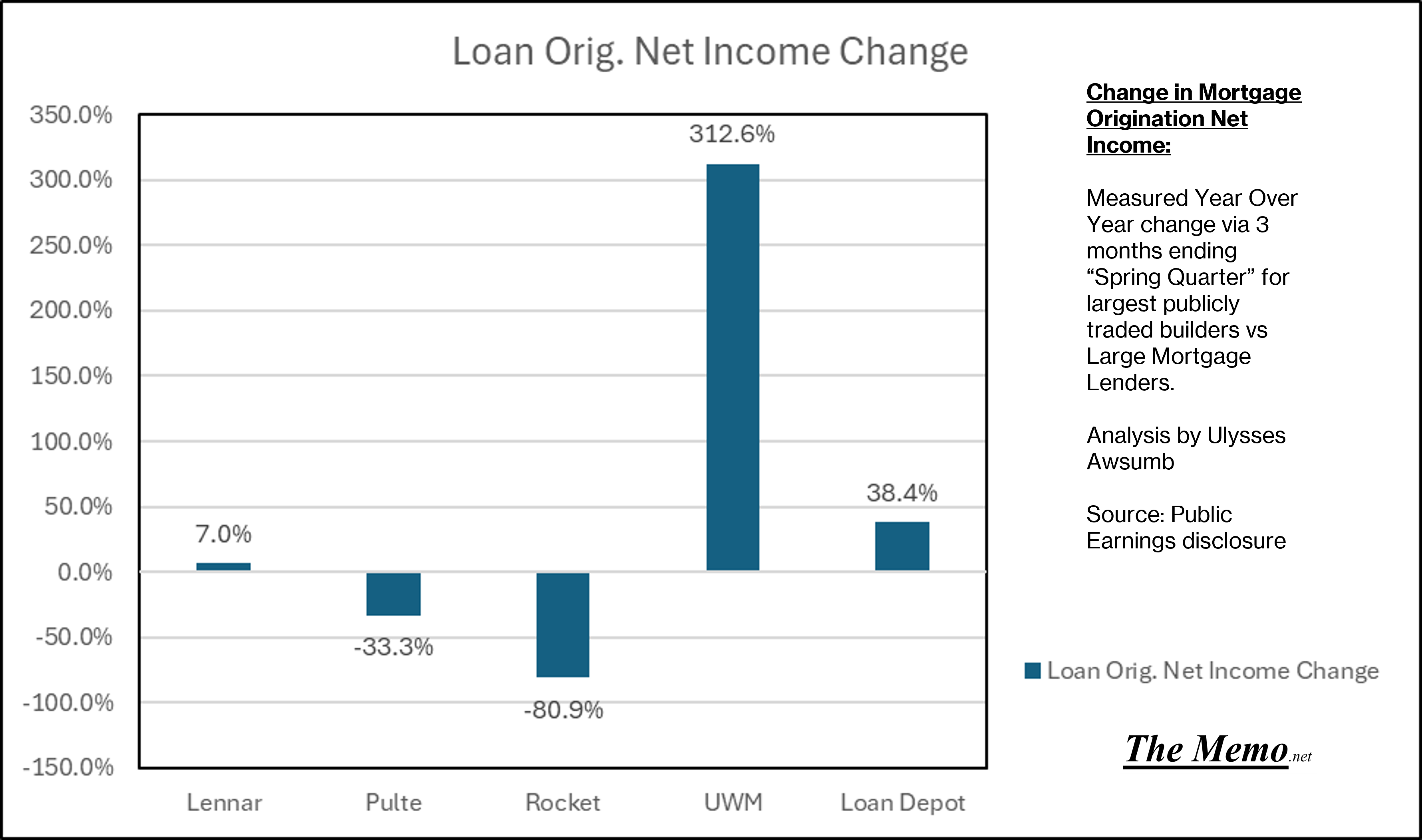 On loan origination net income change, UWM and Loan Depot fared the best.