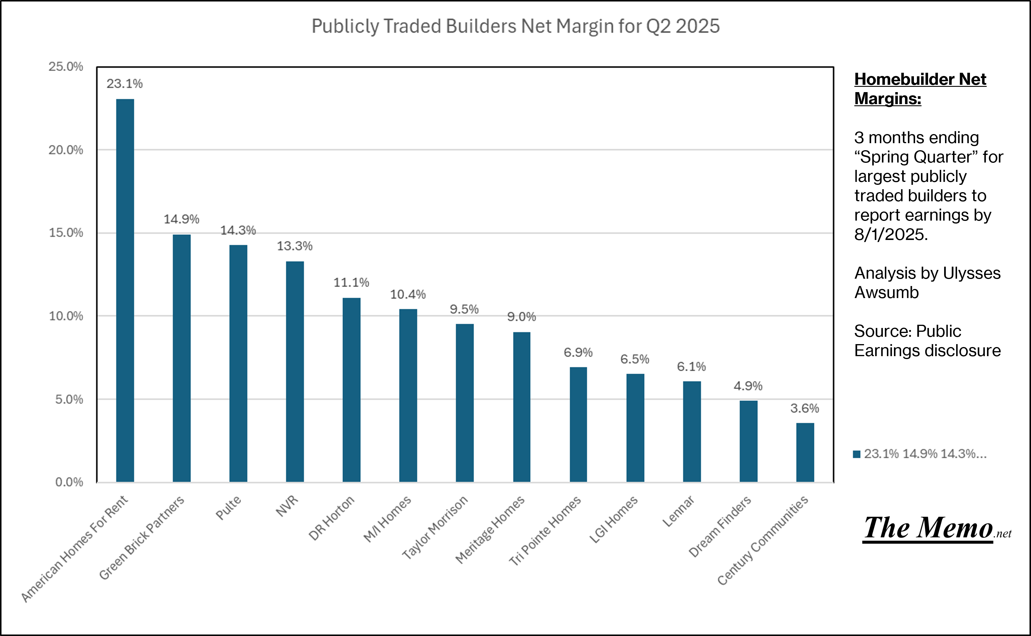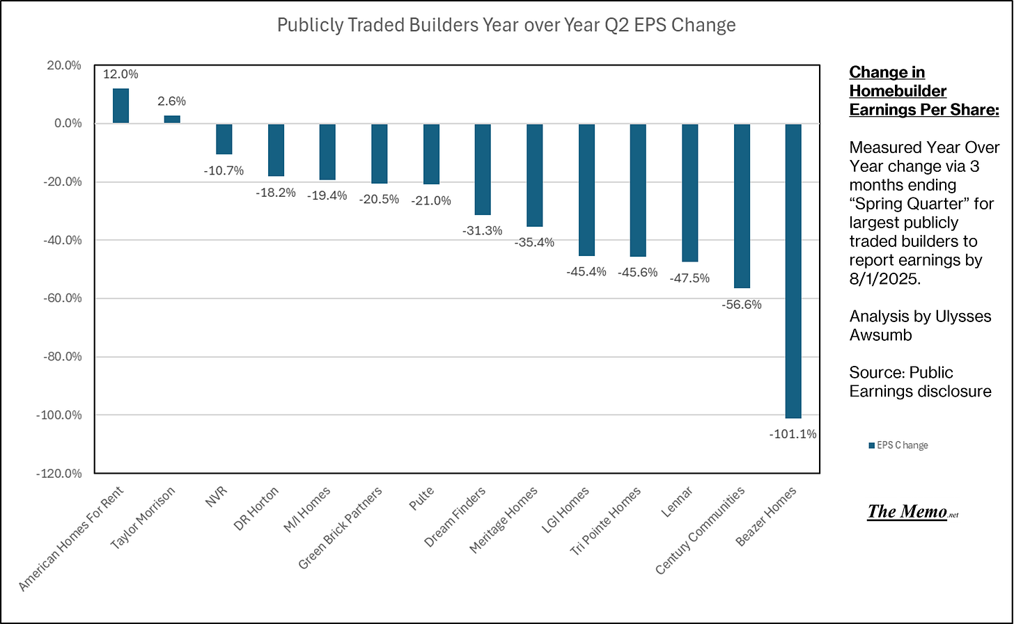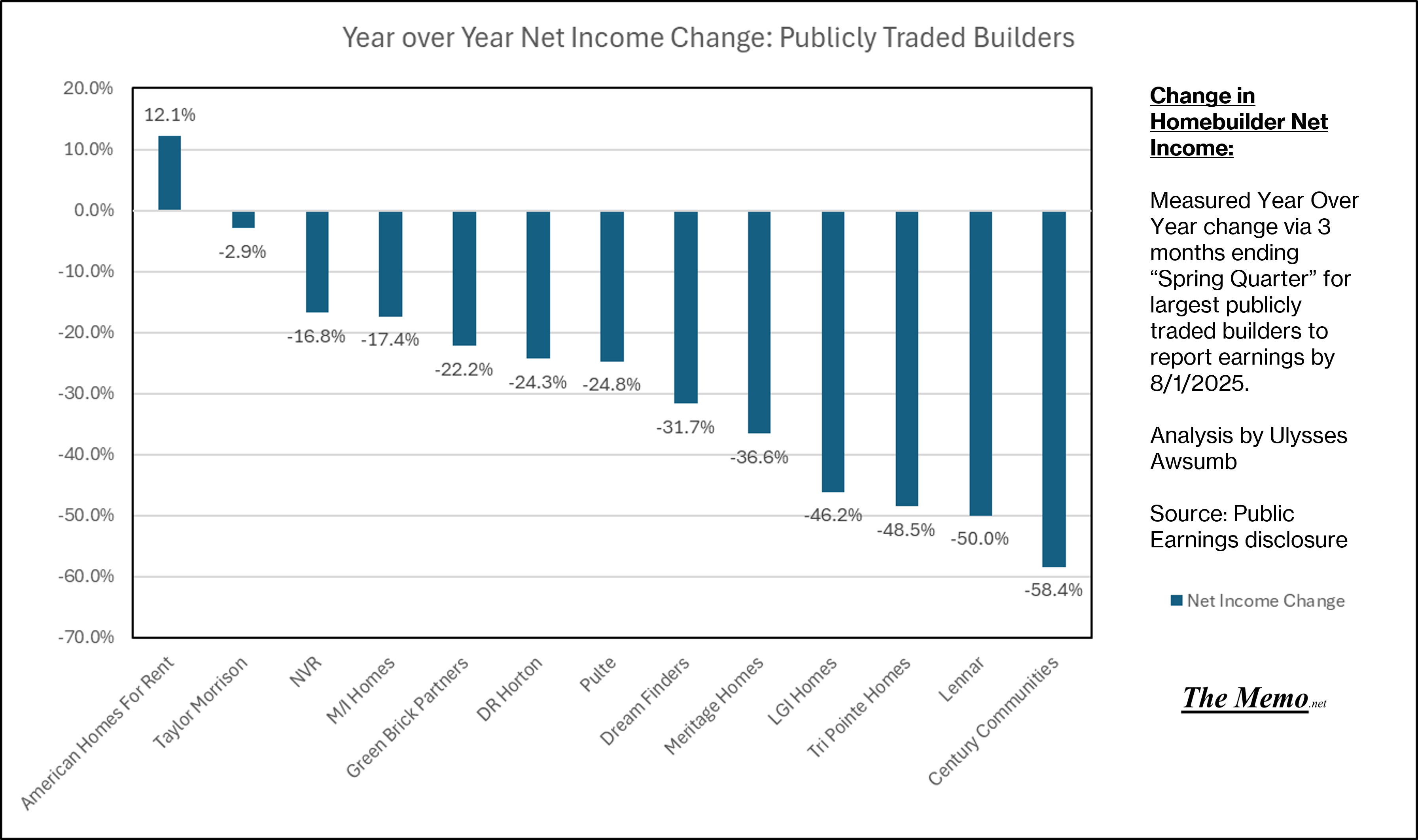 Century Communites lead the way to the bottom, at -58.4% change in Net Income.