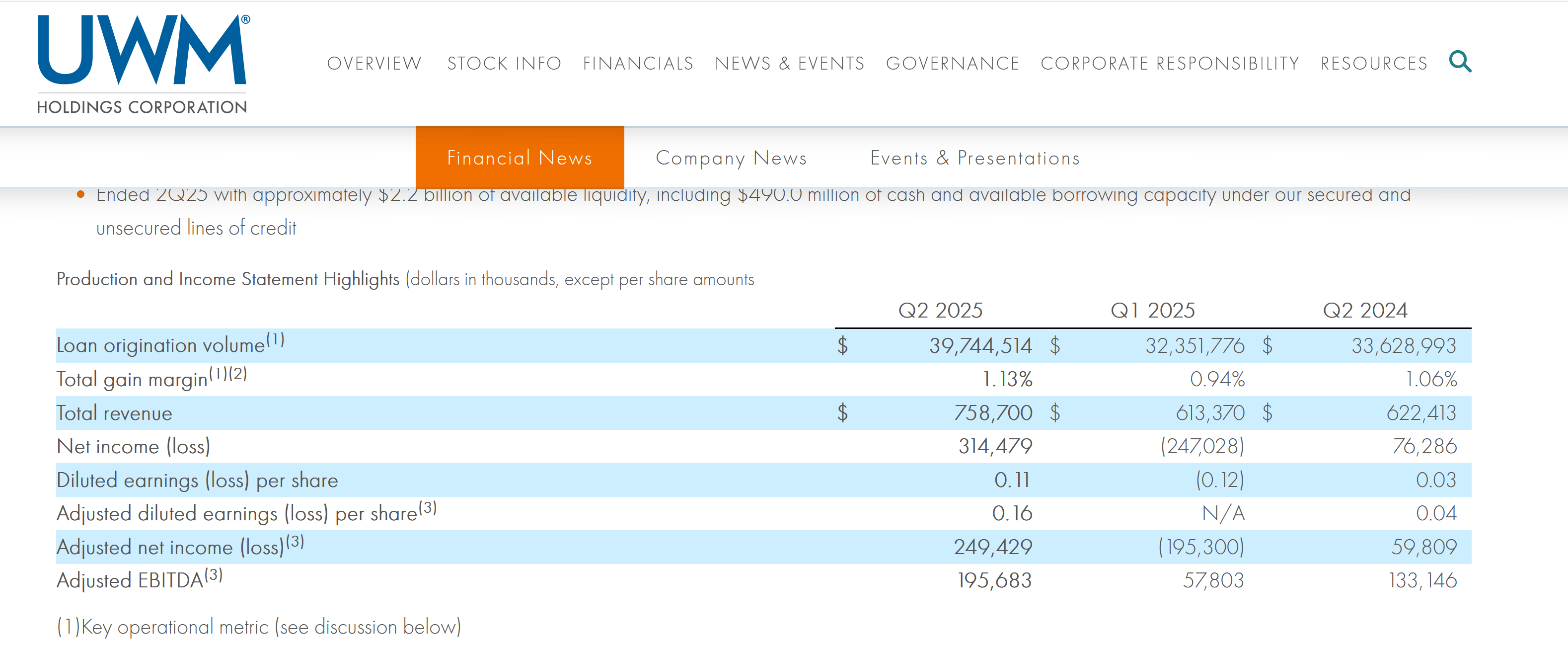 and UWM just came off a big loss in Q1.