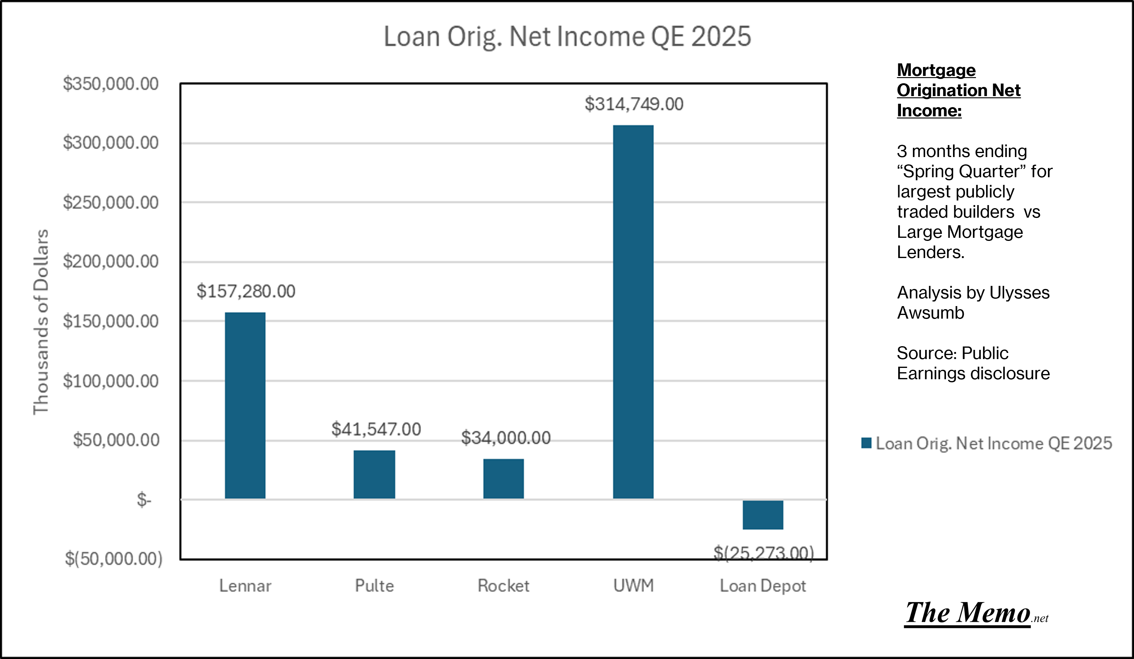 While Lennar and Pulte netted more income than all but UWM on the quarter in loan originations.