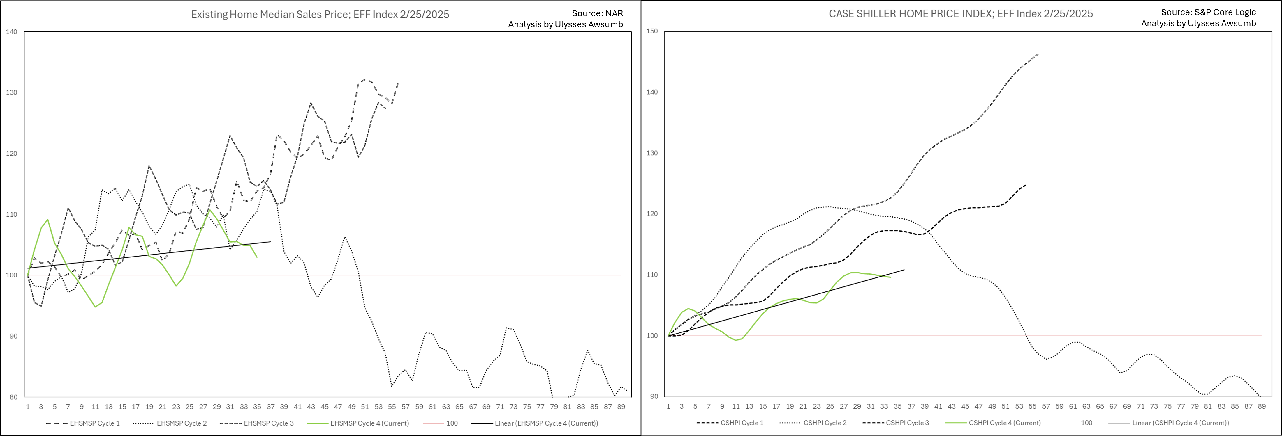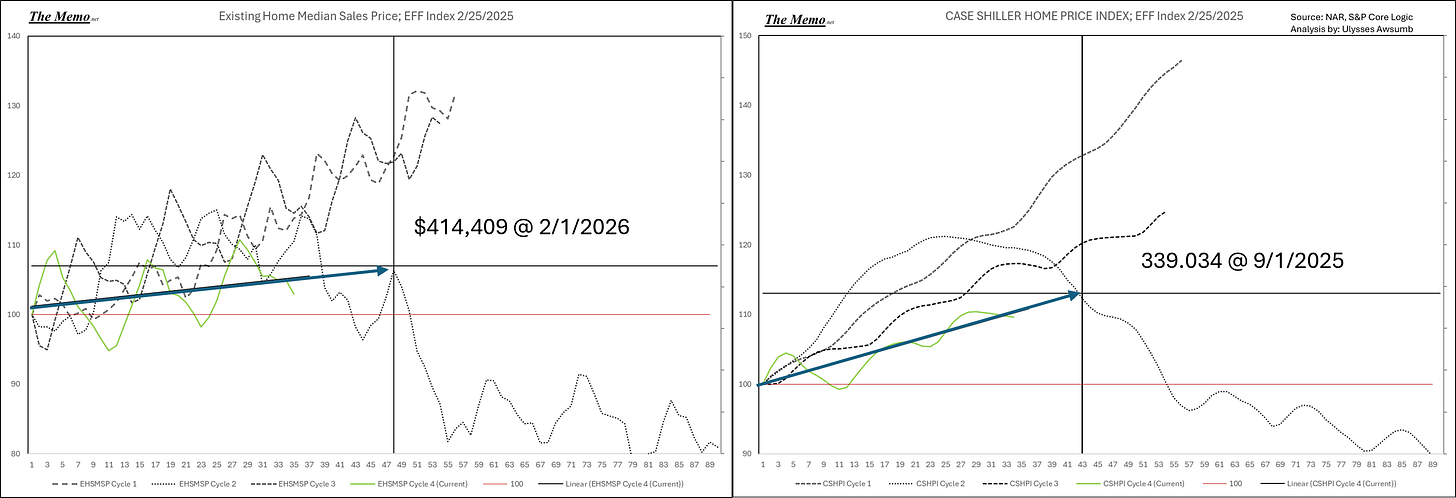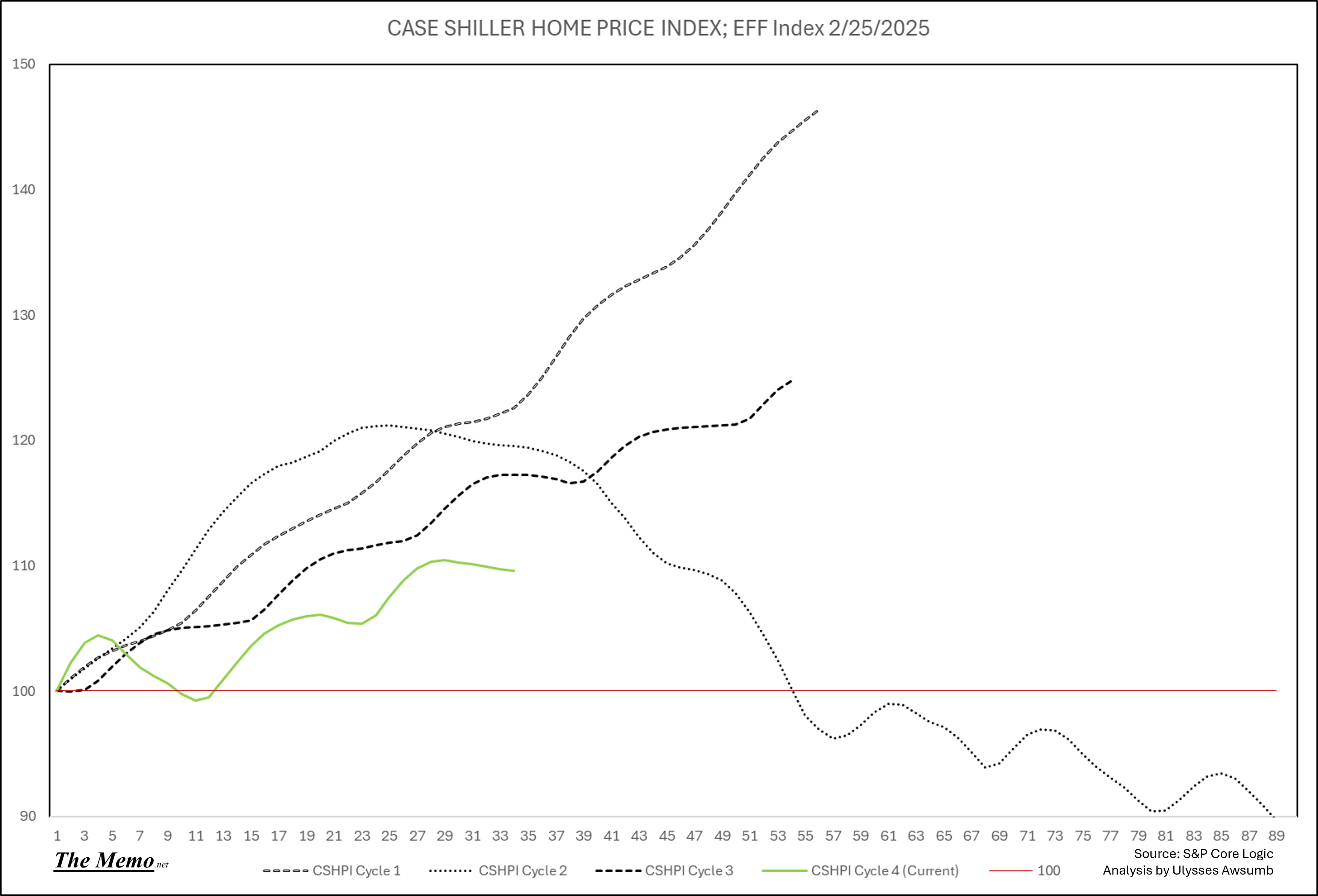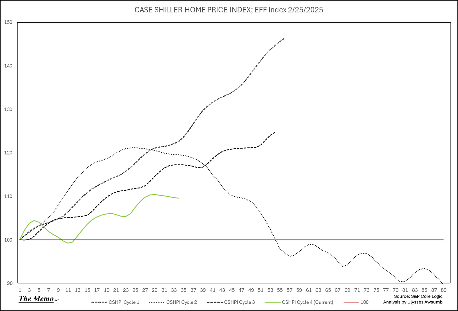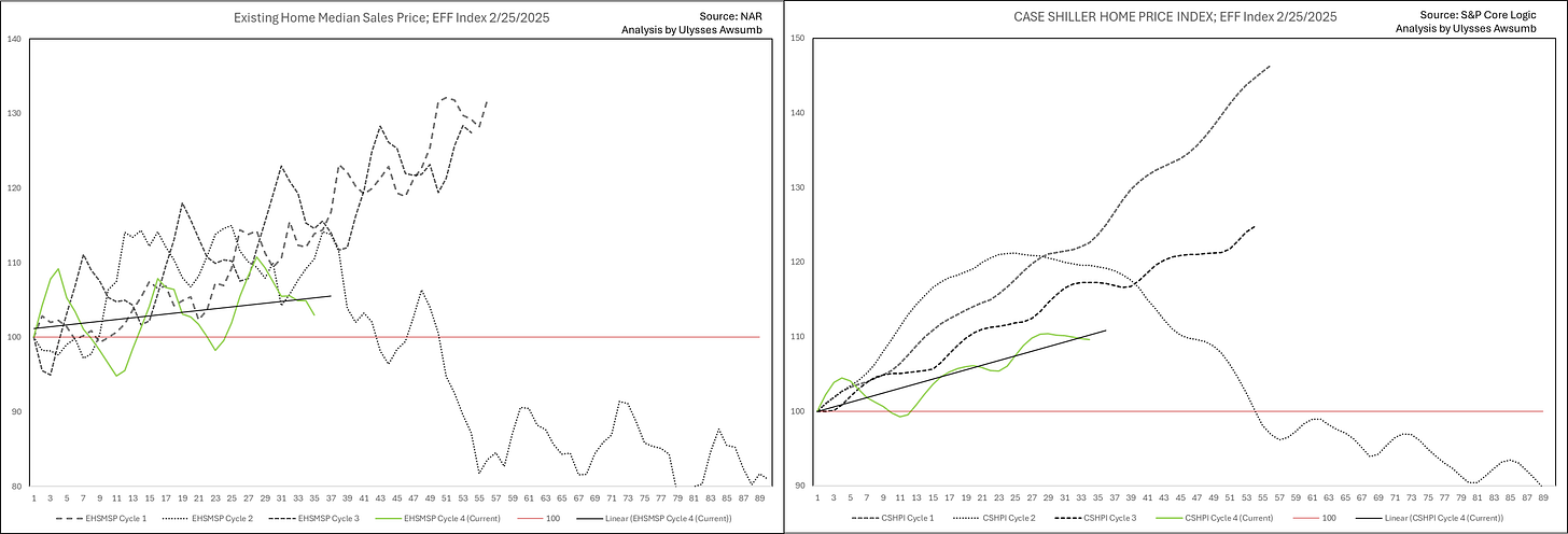 And as we normally measure these things, here is the as released this week, December 2025 Case Shiller Index as measured by the four Rate Turning Cycles of the 21st Century.