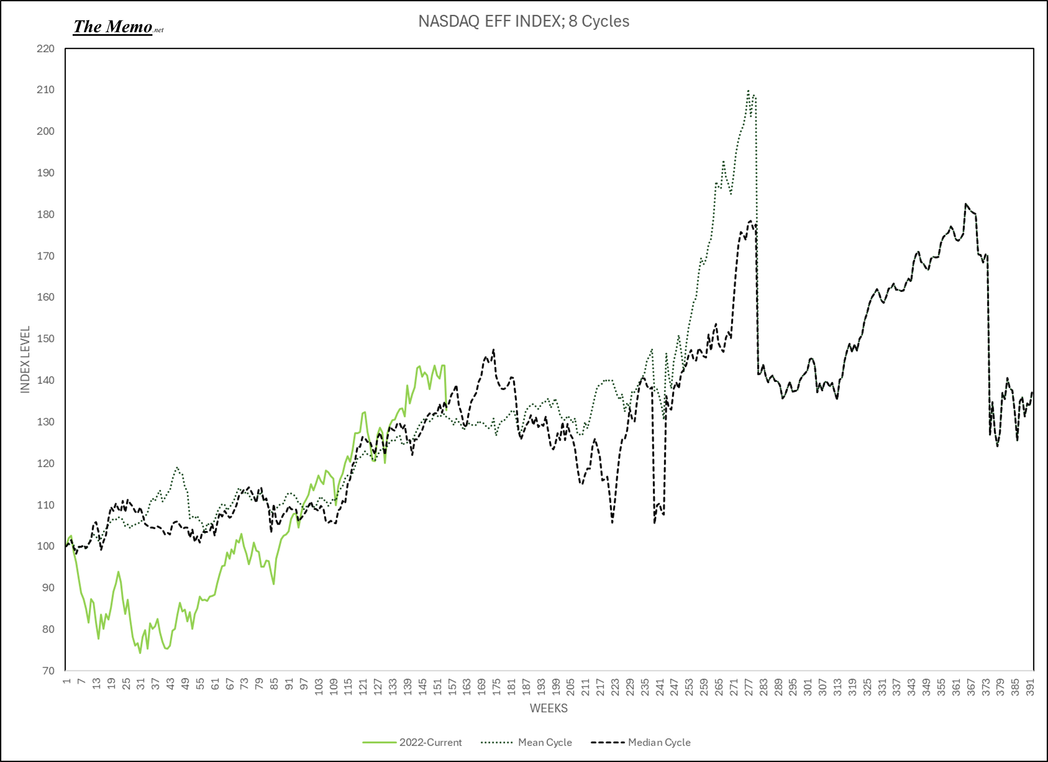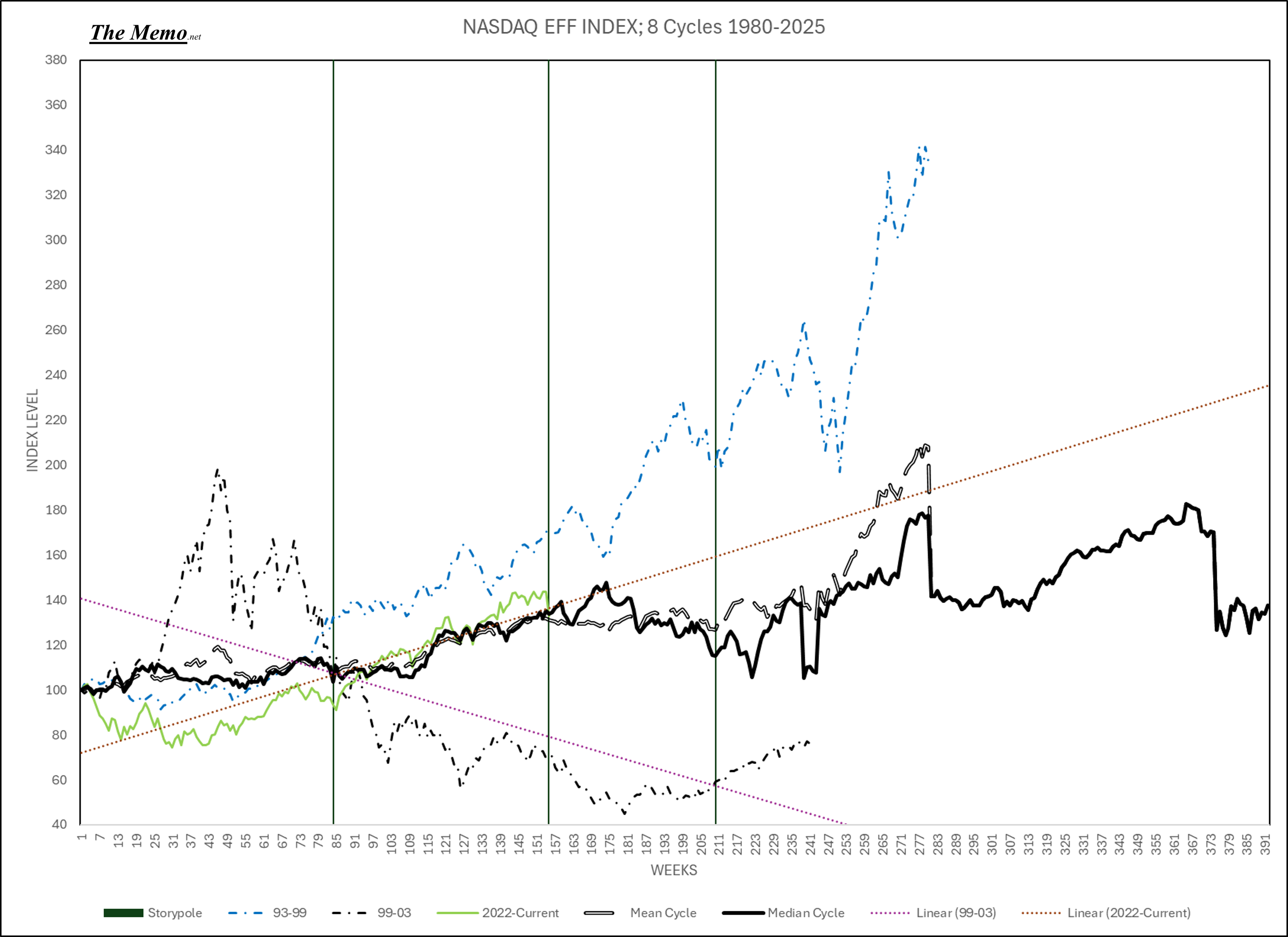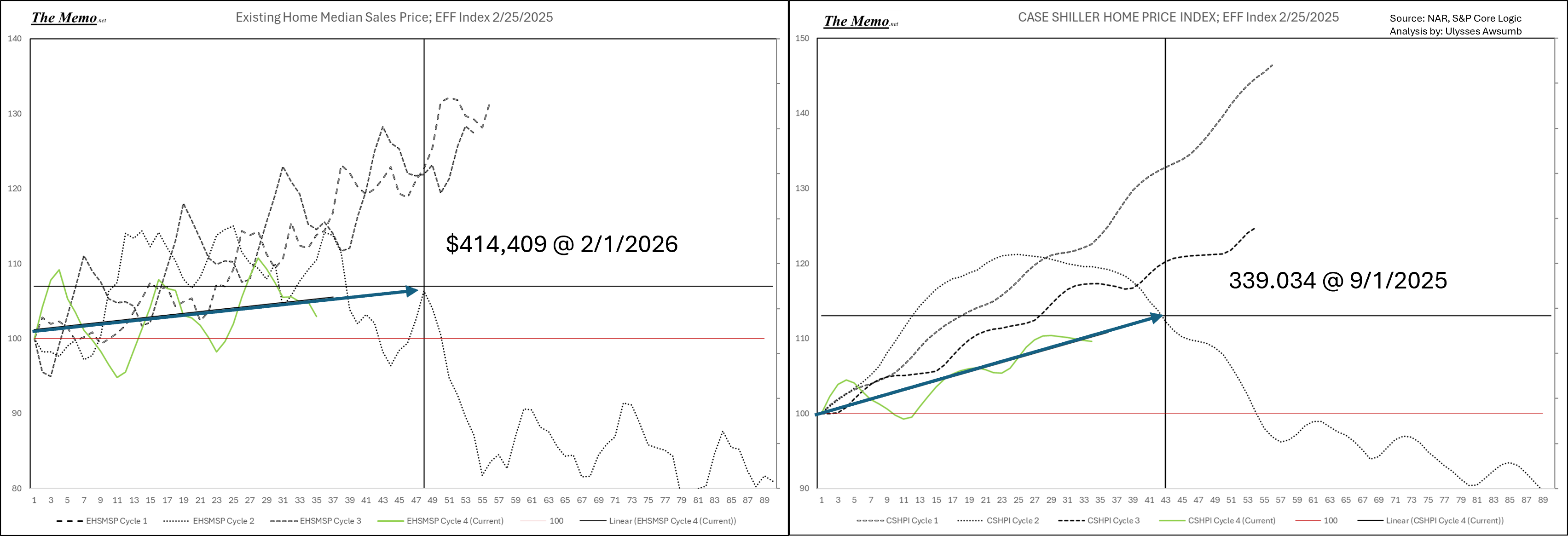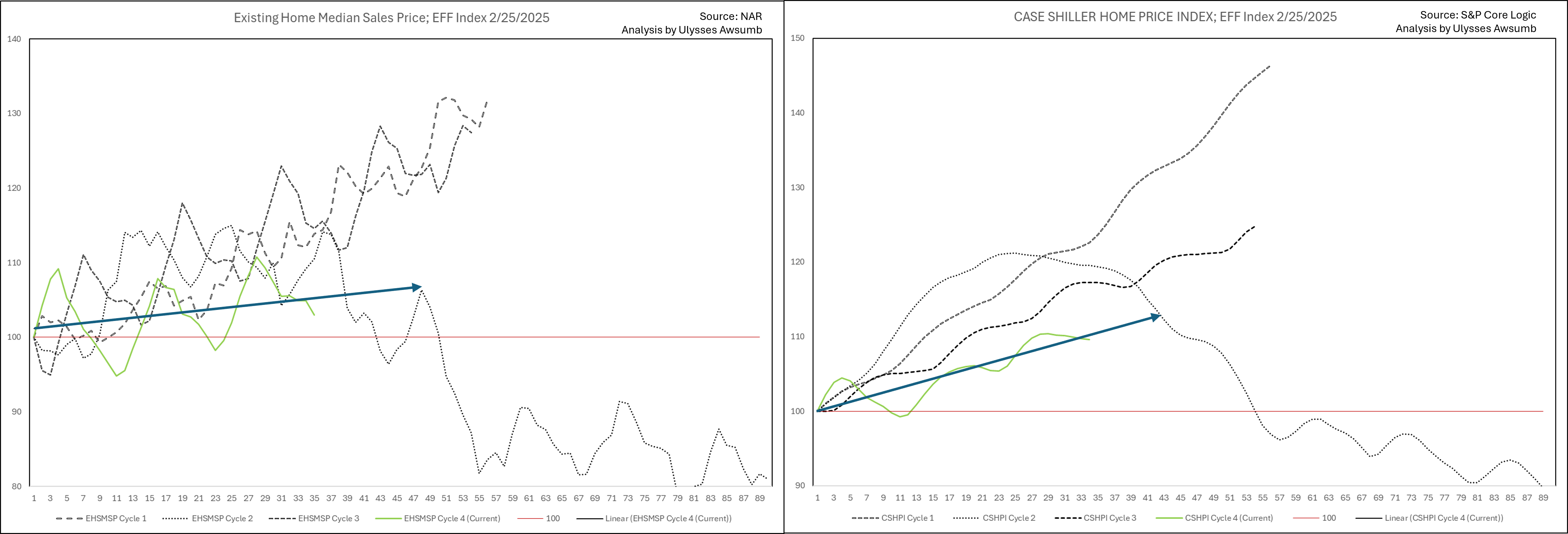 And as we normally measure these things, here is the as released this week, December 2025 Case Shiller Index as measured by the four Rate Turning Cycles of the 21st Century.
