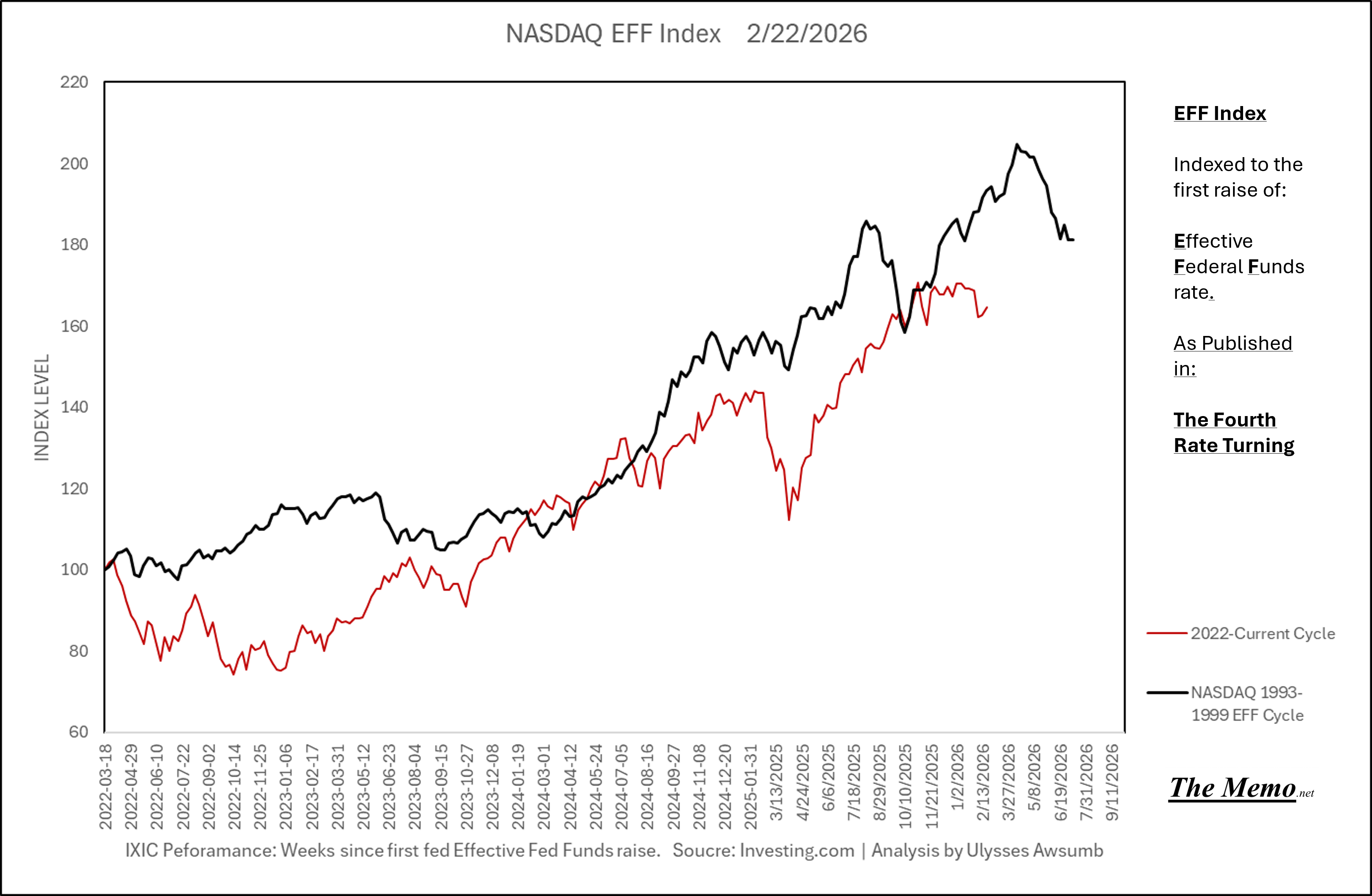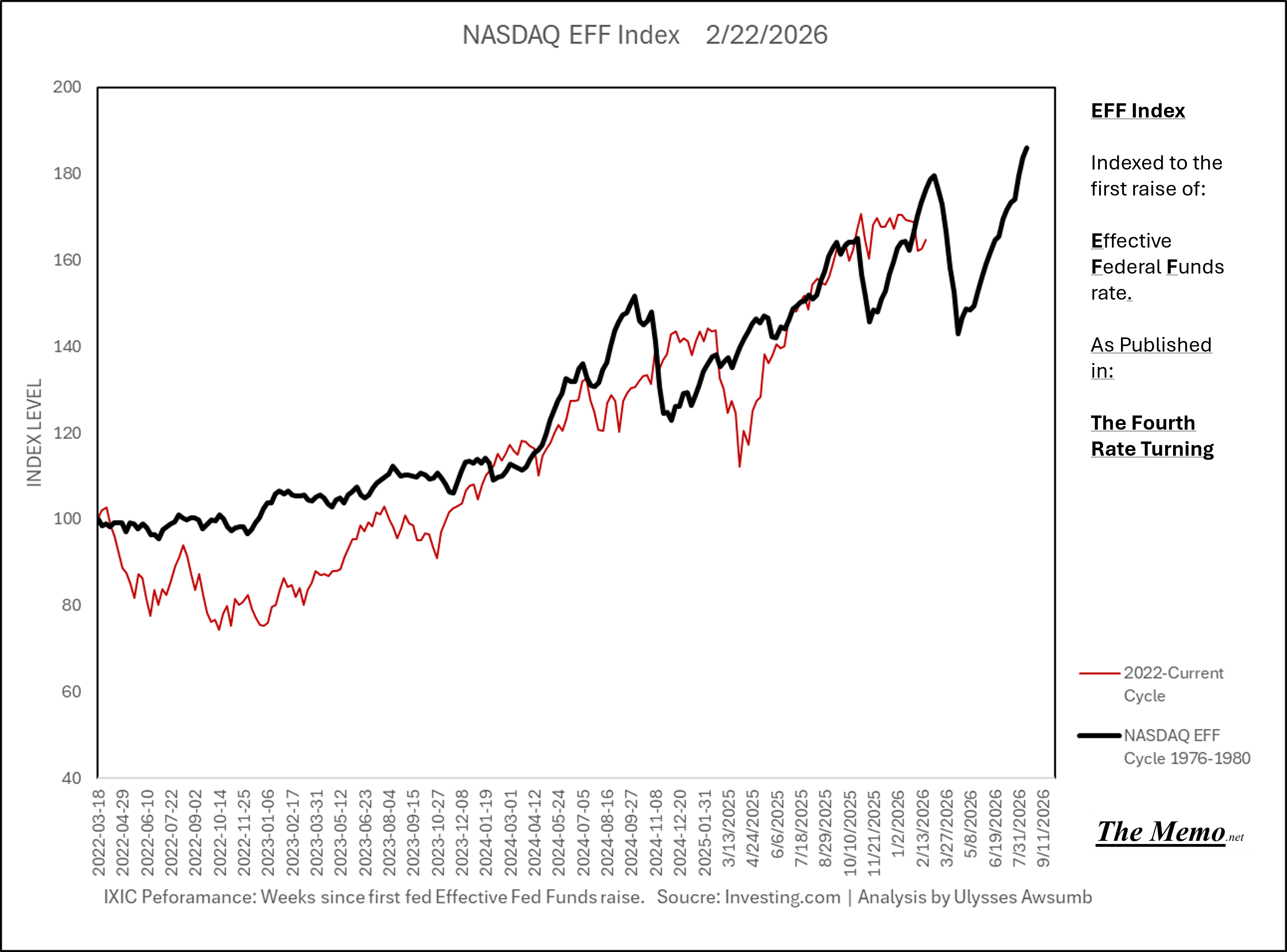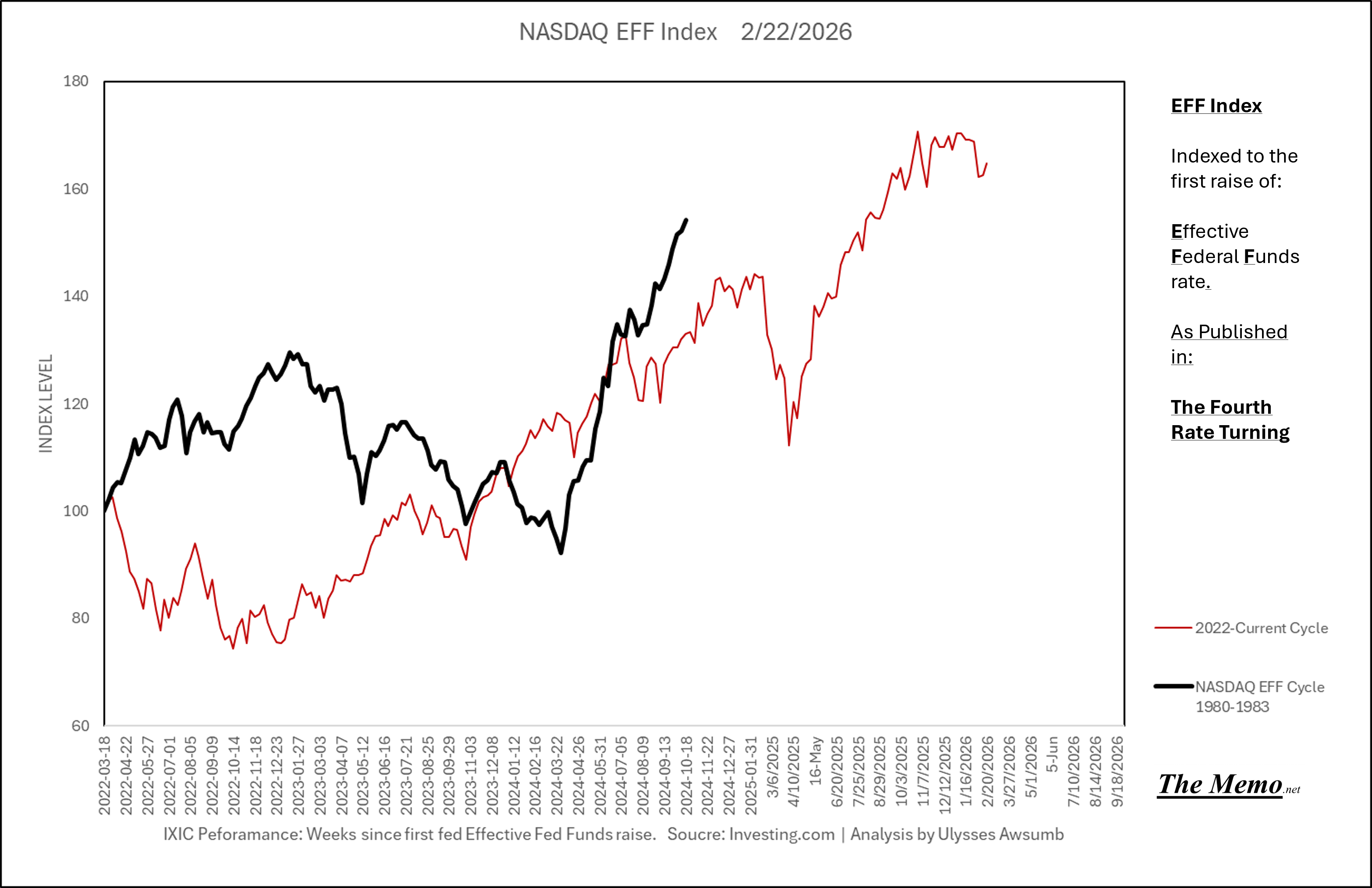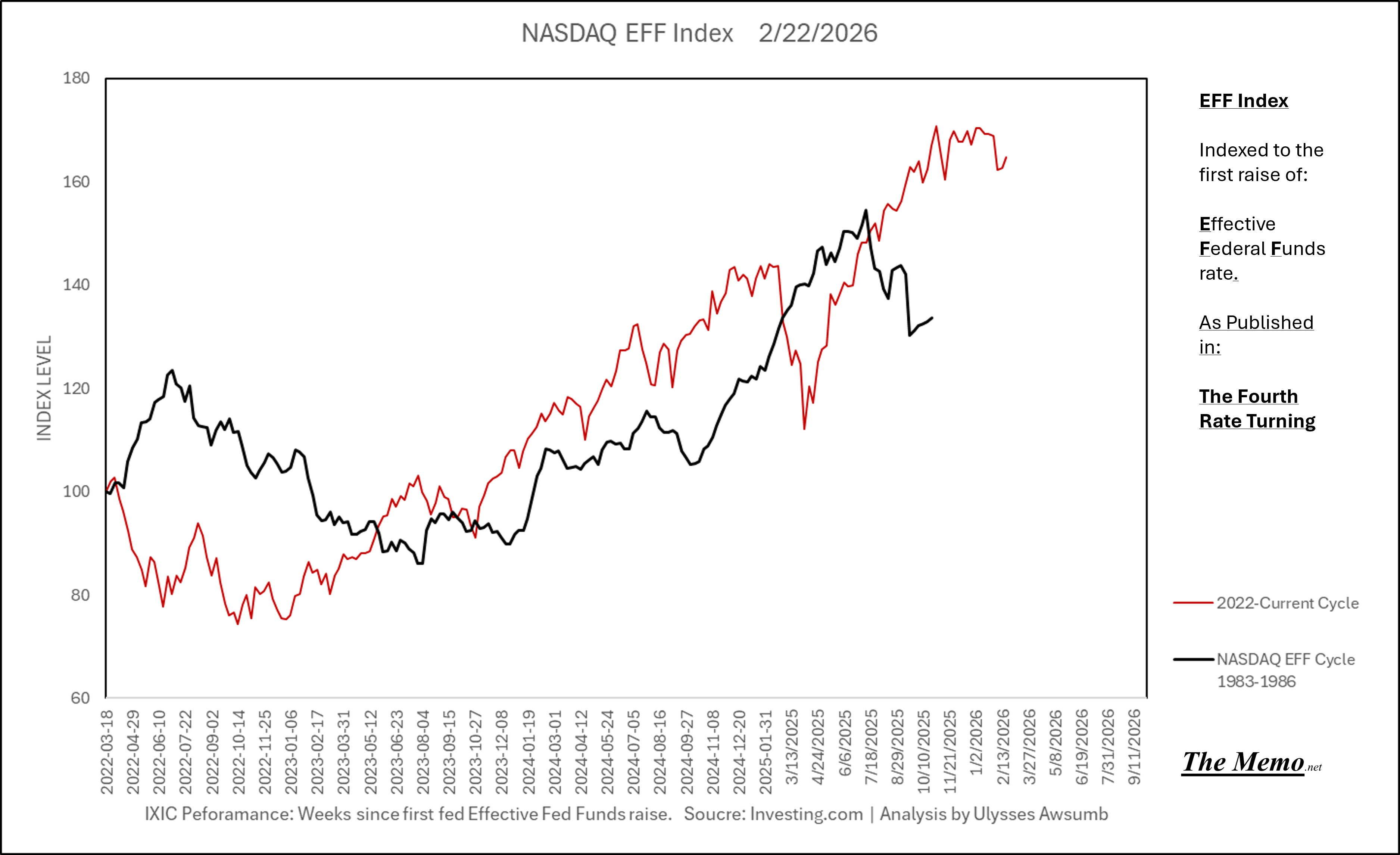 Using the EFFing timeline (Effective Federal Funds Cycles, for the new folks) comparing today’s NASDAQ to the 1985-1993 Nikkei Cycle, there’s some remarkable resemblances.