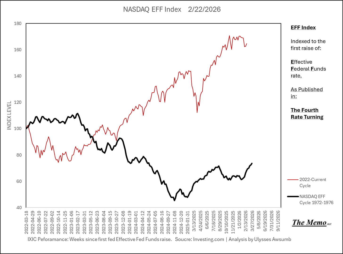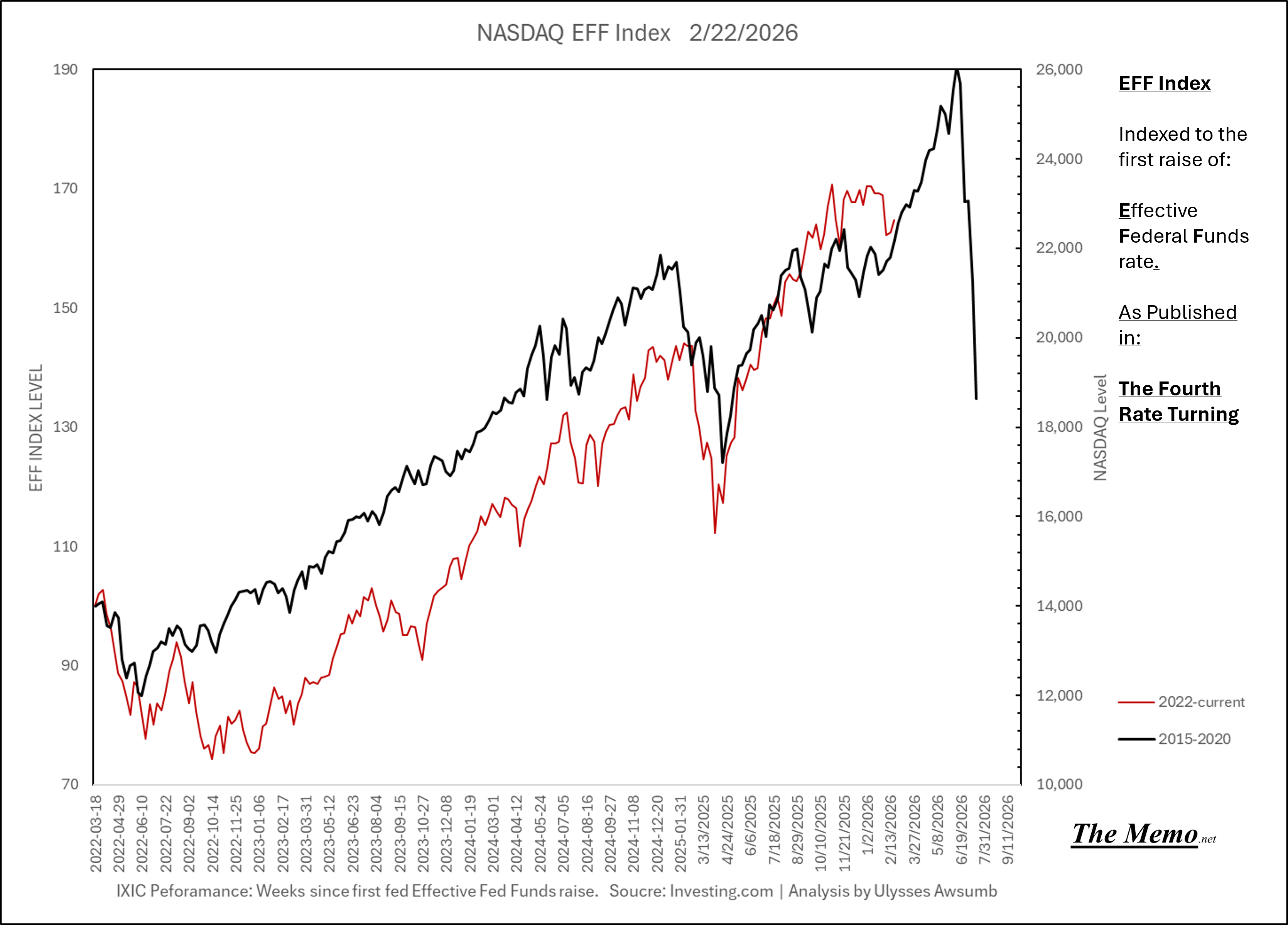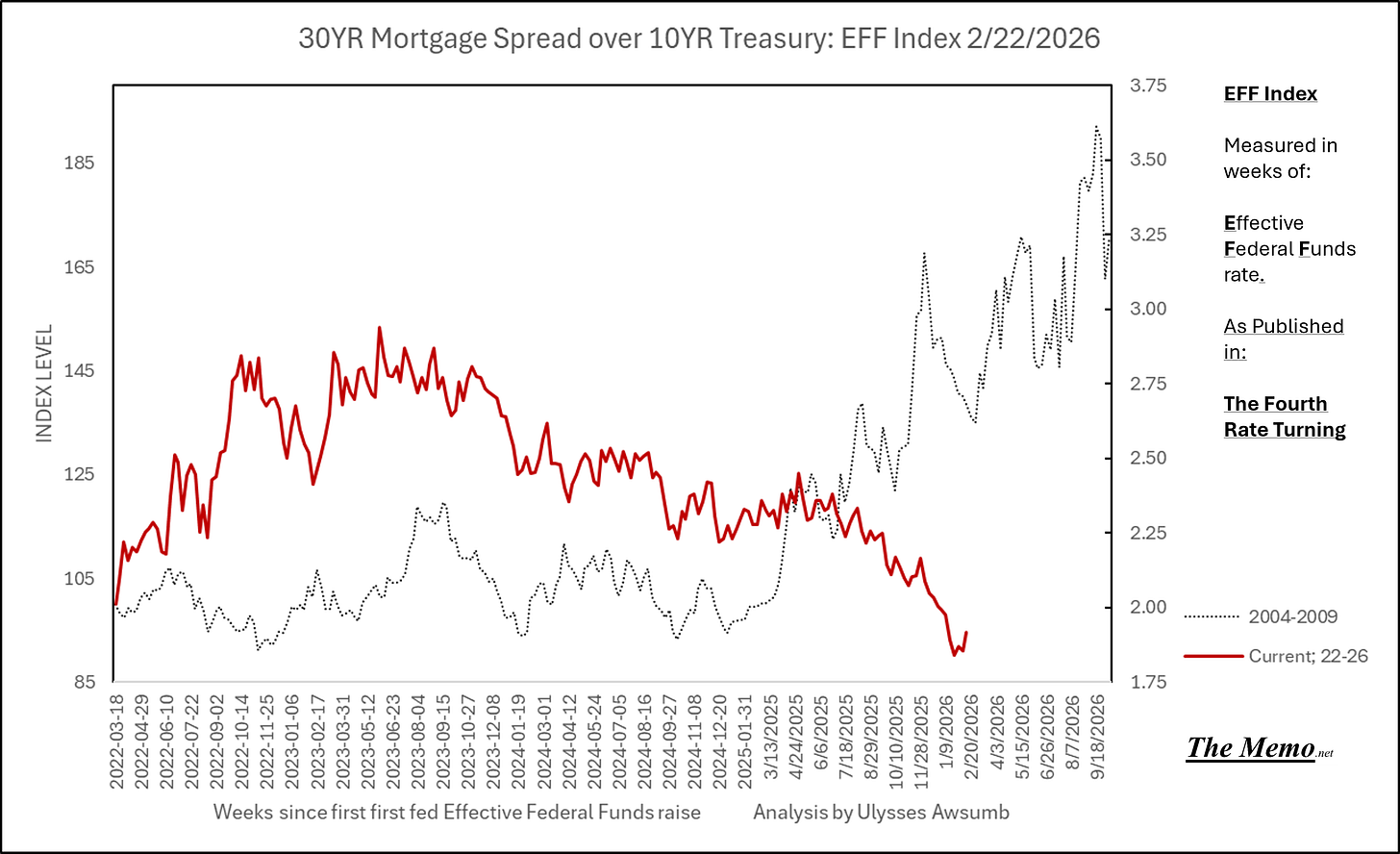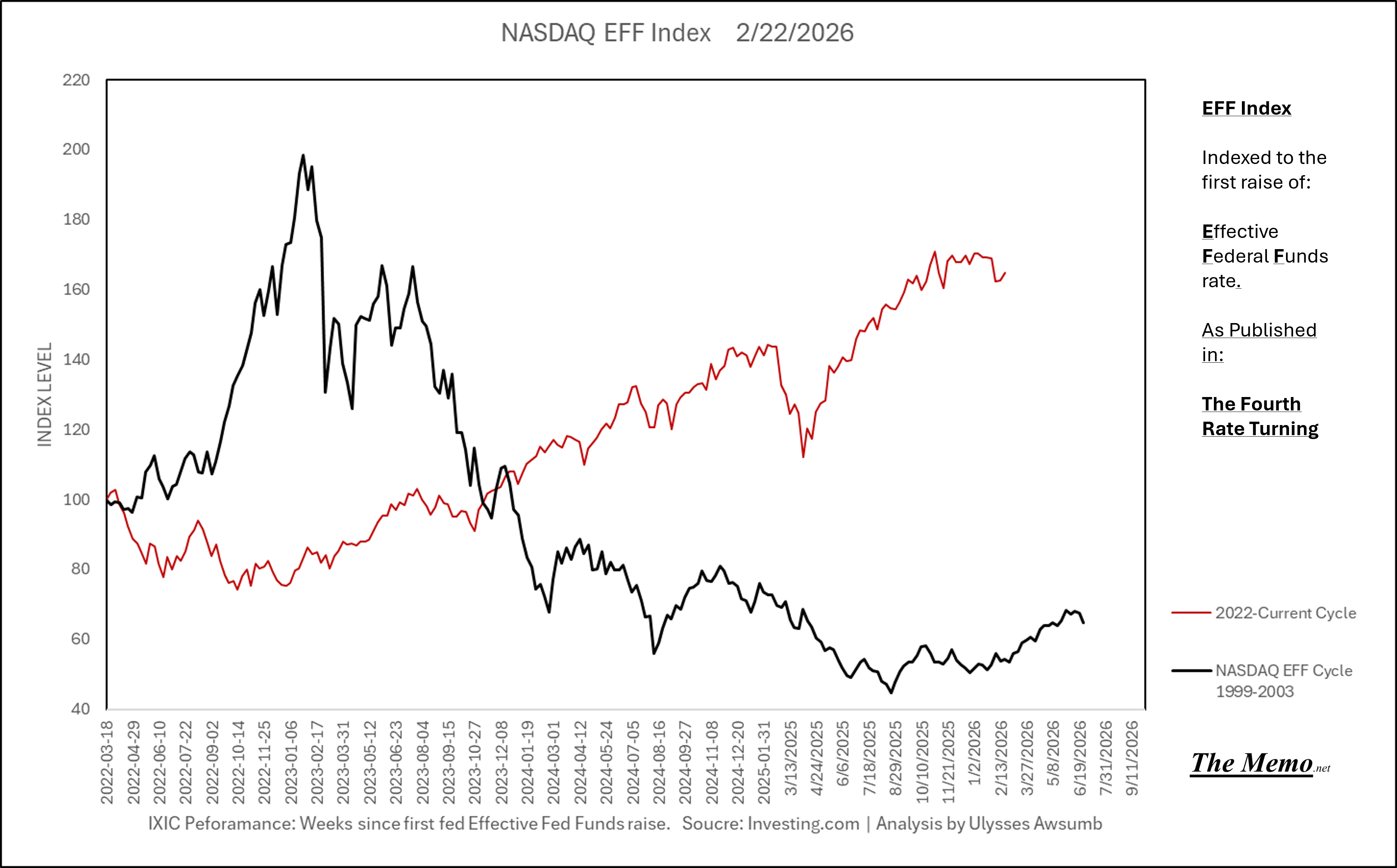 Using the EFFing timeline (Effective Federal Funds Cycles, for the new folks) comparing today’s NASDAQ to the 1985-1993 Nikkei Cycle, there’s some remarkable resemblances.