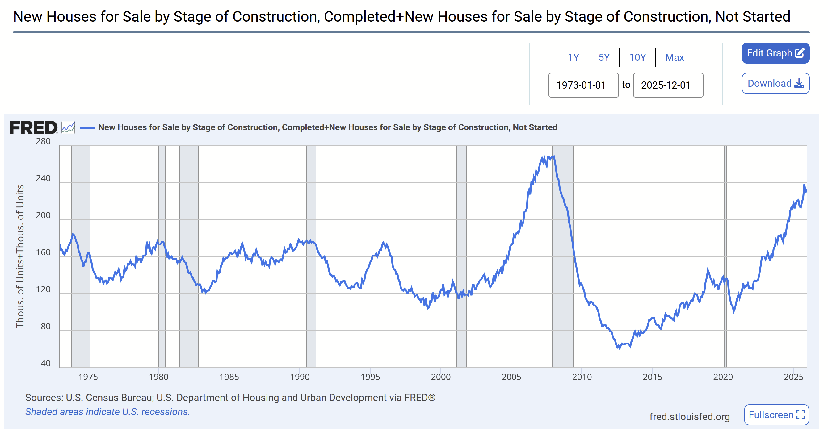 All that contraction while the number of “Spec” homes for sale keeps growing. Just one vertical bar away from tying the all time high.