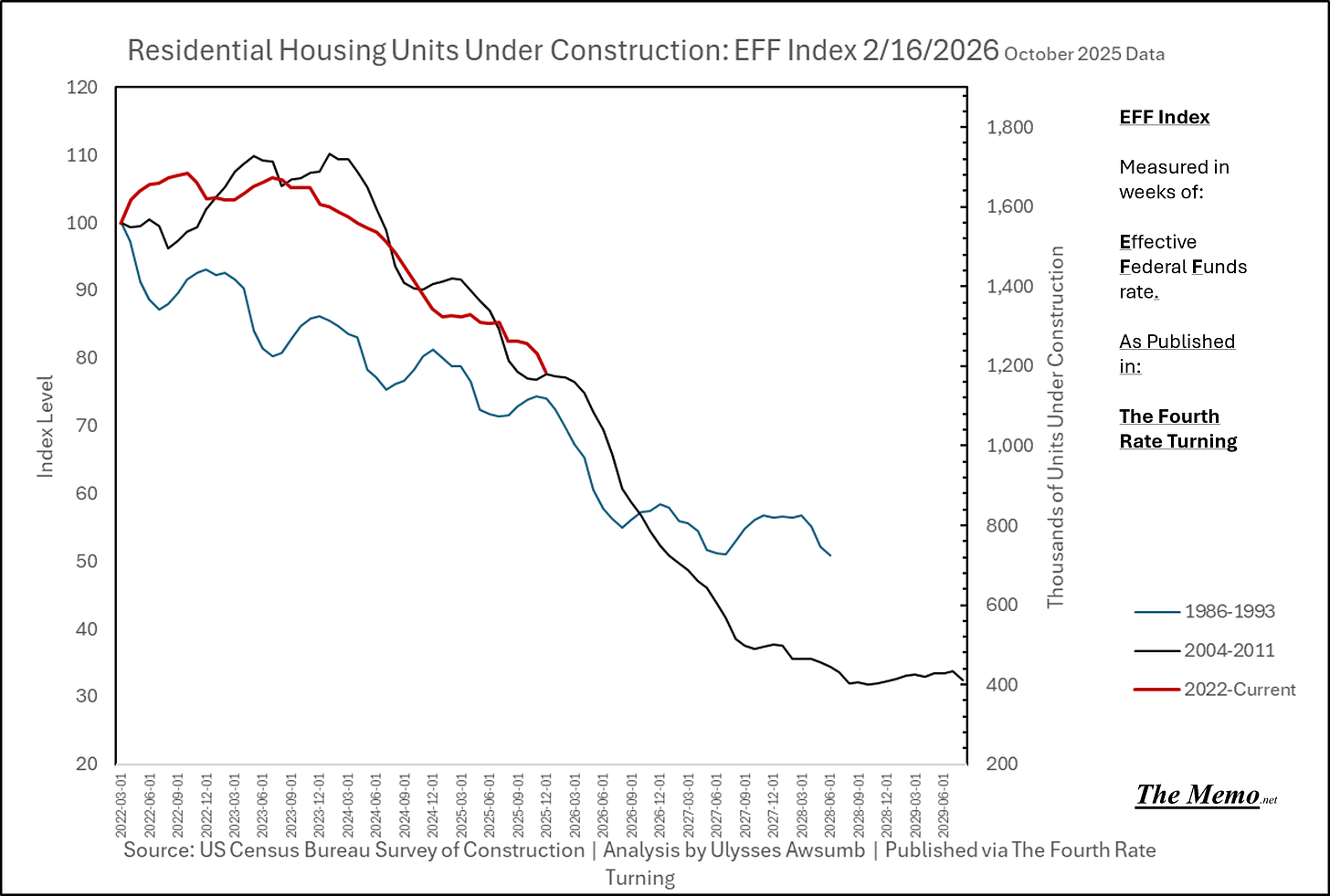 Residential units under construction have contracted by 28% since the shift in EFFing rates began. While that’s not a small number, it’s worth remembering that contraction is coming off a peak of ALL TIME HIGH in units under construction. As in the most amount of housing being built in recorded history.