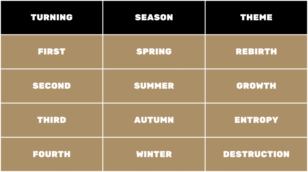 Coincidentally, Neil Howe’s Fourth Turning seasons average 20 years each, or roughly 80 years start to finish. Each of those seasons represents:
