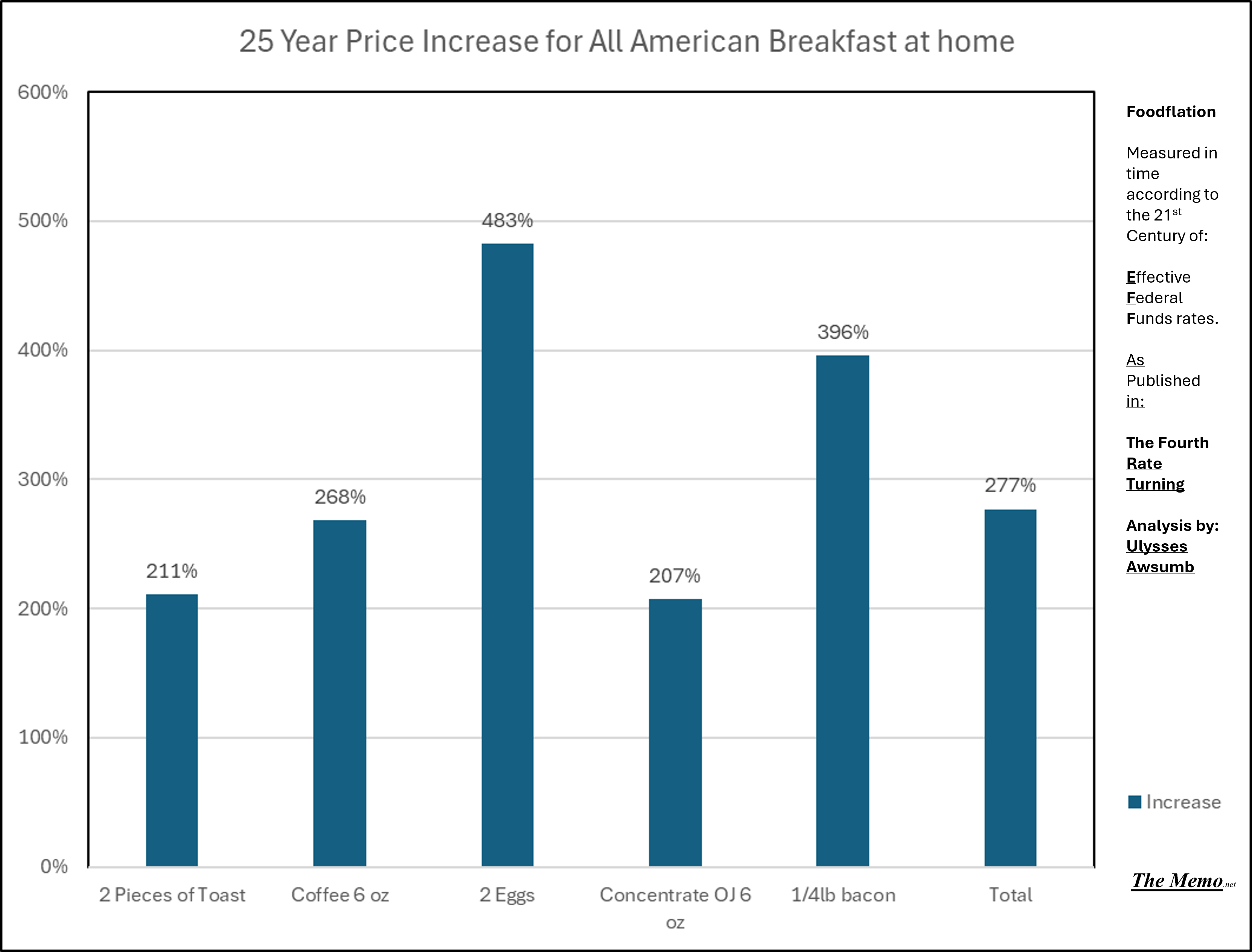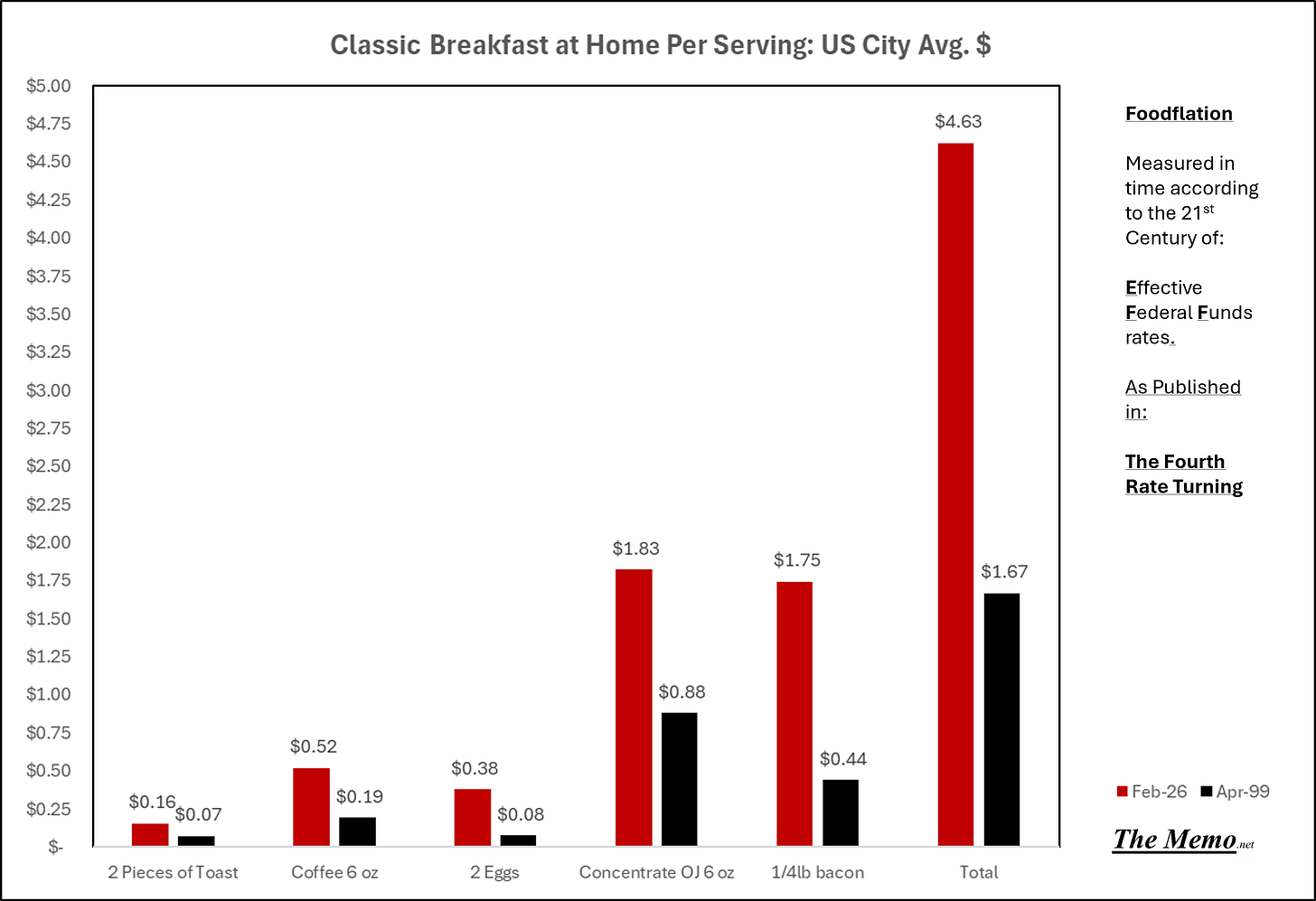 This is just the change in cost of the American breakfast staples since the fourth rate turning began.