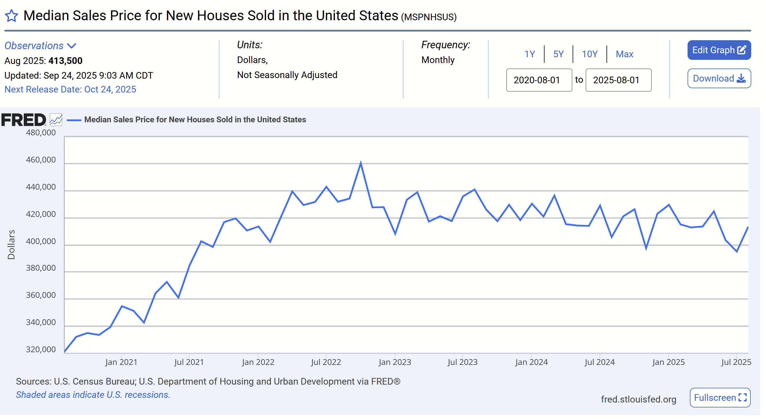 Median Sales Price increased year over year by 1.9%, ending 7 consecutive months of negative slide. The Median Sale Price for a New Home was $413,500. The past 5 months received revisions to pricing, including bringing the new cycle low price of $395,100 in July, tying August 2024 for second highest negative YOY change in price this cycle.
