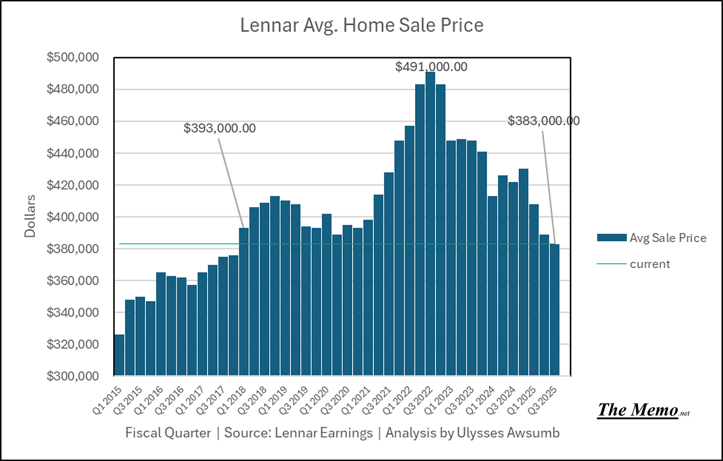 By the way, Lennar just erased 7 years of price gains. With Avg. Sales price back to 2017/18 levels.