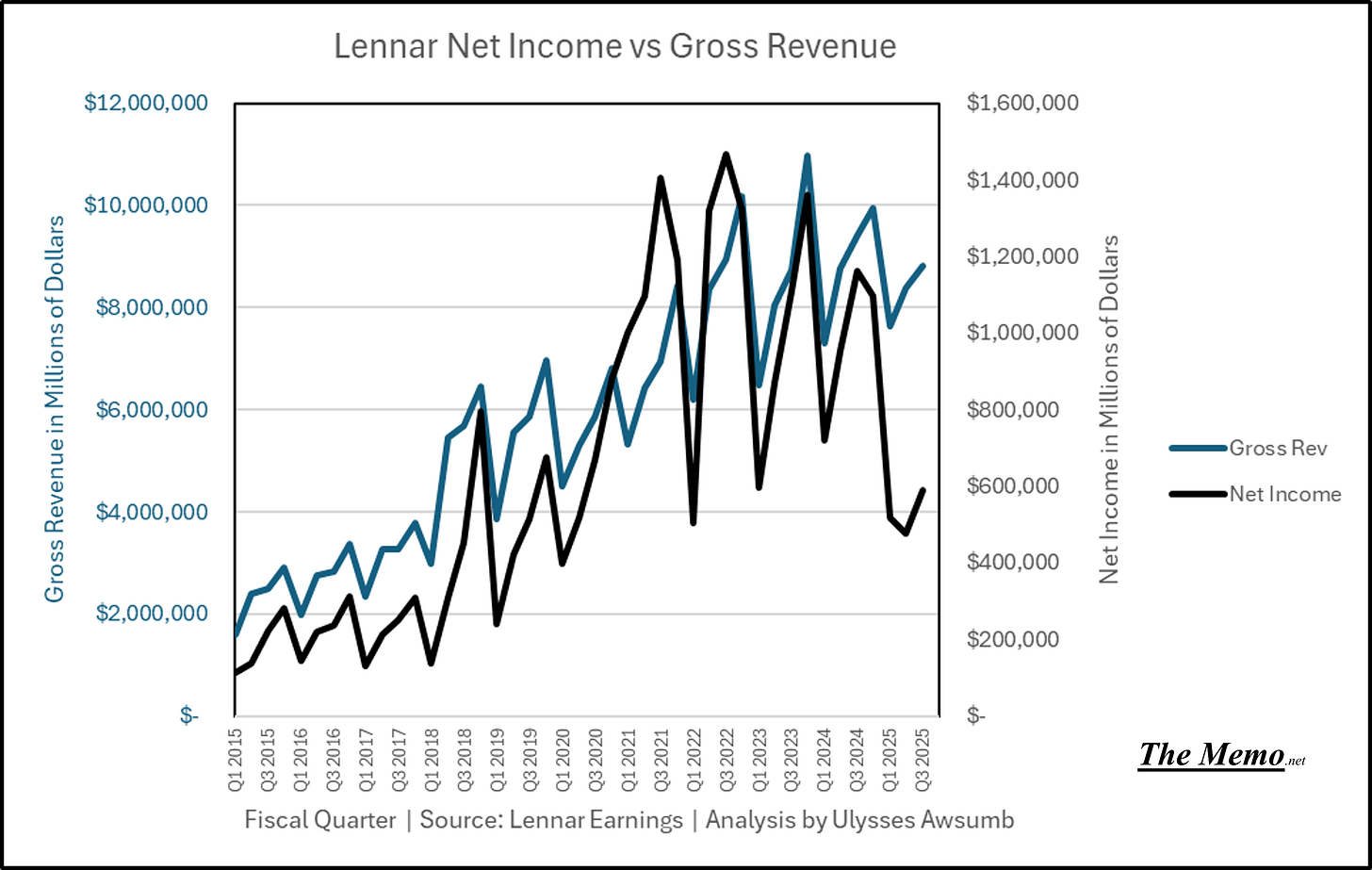 This report contains analysis of Lennar’s most recent Earnings, and compares Lennar’s Fiscal Quarter Earnings to the US Census Bureau Survey of Construction data.