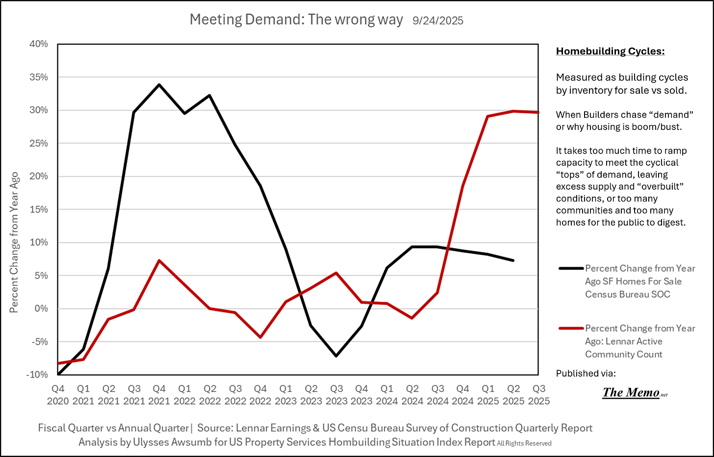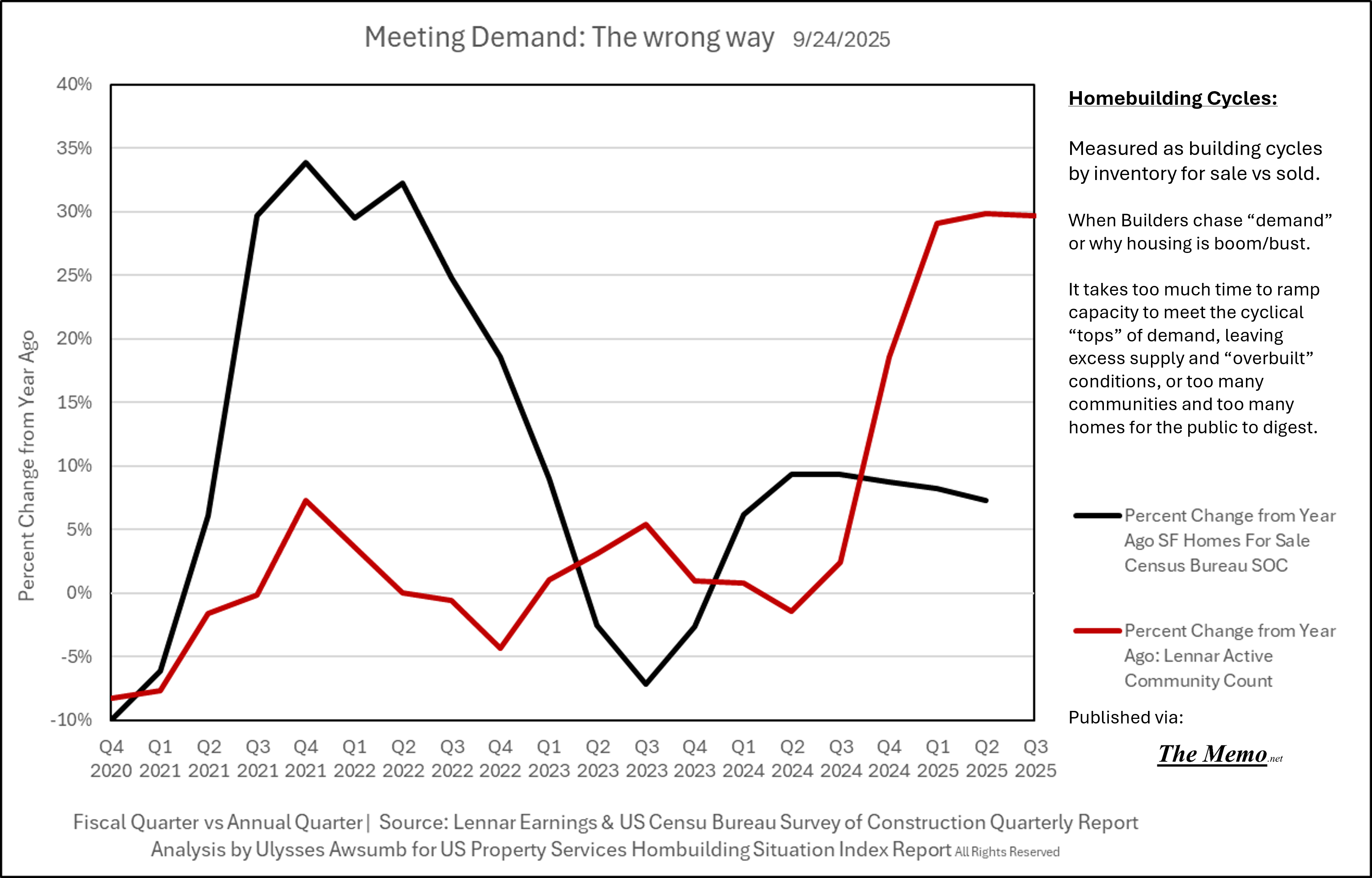 Today marks the 1 year anniversary of the very first published US Homebuilding Situation Index. In that time, the index has lead the way, as a leading index should, from seeing the situation deteriorating in Q4 2024 to seeing the rise of the August 2025 sales all ahead of when “analysts” and “Consensus” could imagine. But then again, when you’re scanning the horizon as you drive, you see and react differently than when you’re staring at the pavement in front of the hood. Just drive down your local highway en route to work, and you’ll notice the traffic jams form at bends and hills for no particular reason, other than not seeing whats more than 2 feet in front of the car.