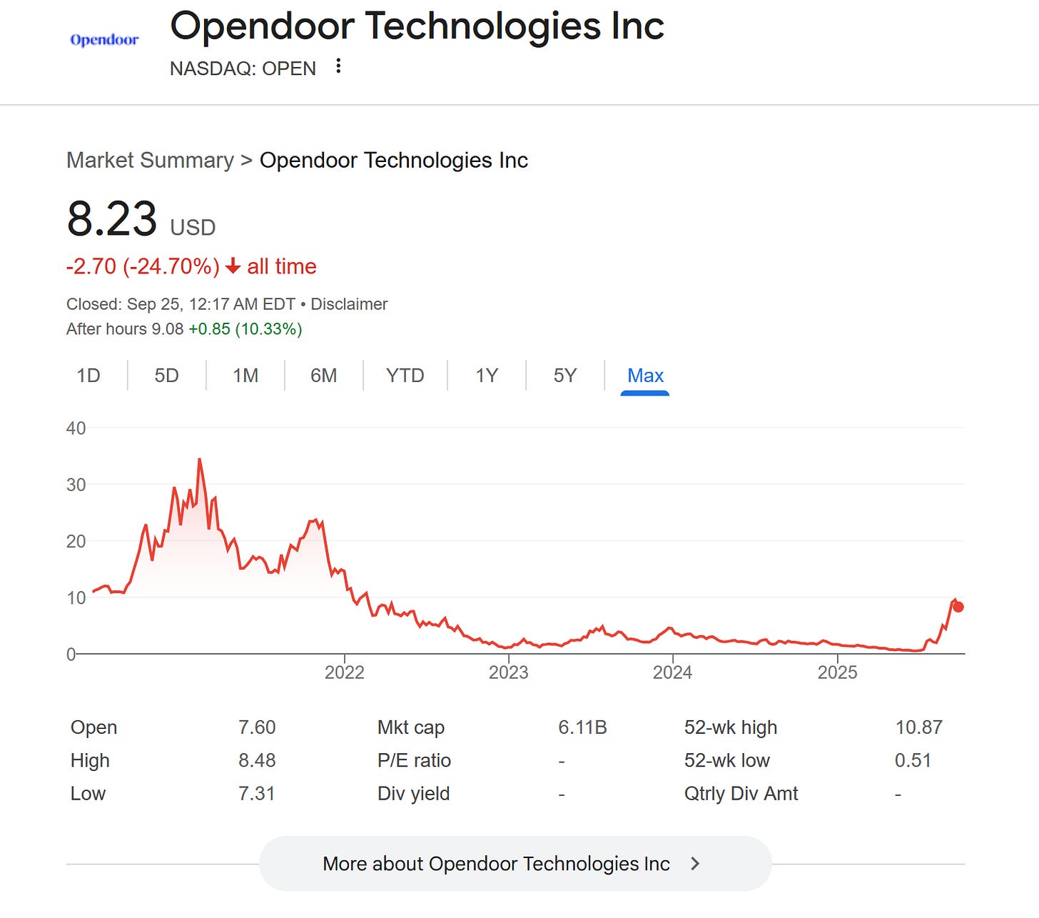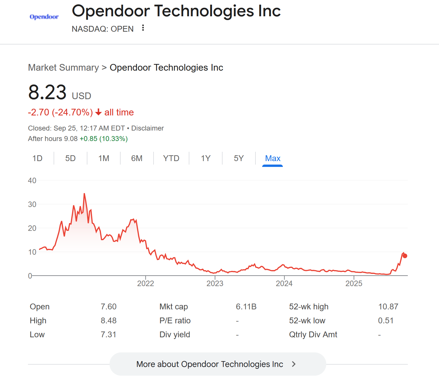 The same people tell me that “Opendoor” has gone parabolic in recent weeks.