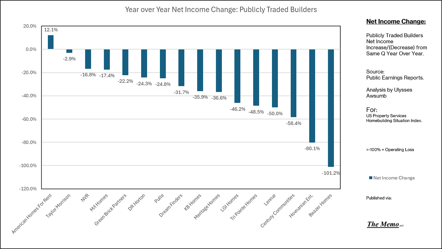 Only 2 saw increase in earnings per share. American Homes for Rent and Taylor Morrison. Only American Homes for Rent saw increased net income on the same basis.