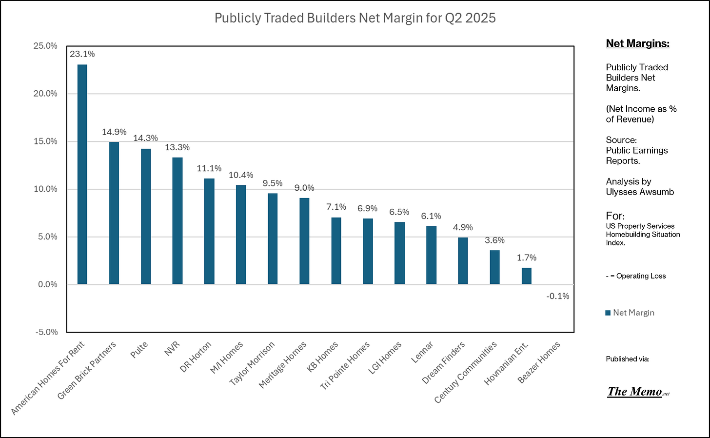 The combination of prices and rates present a challenging environment for builders, as two years of incentive to transact become heavy, compressing margins further. 10 of the 16 builders had single digit Net margins. 7 of which were below 7%.