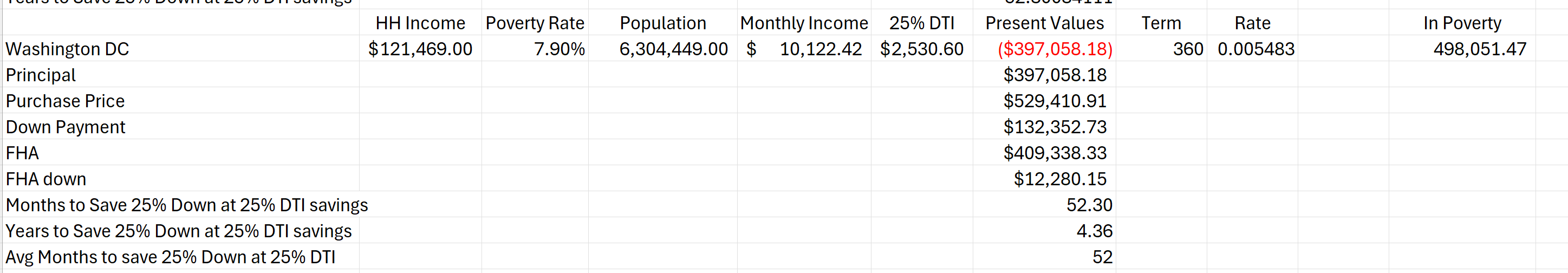 The time to save a down payment required for the conventional finance purchase of a new median priced home, is 52 months. Not 52 years.